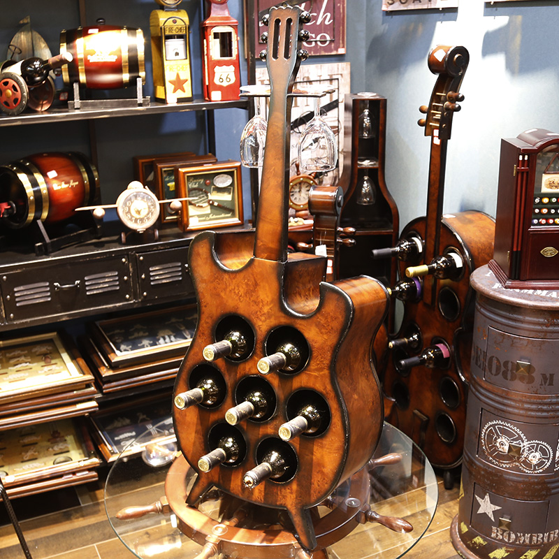 北欧大型木桶提琴吉n他红酒柜展示柜葡萄酒架KTV酒吧酒庄落地摆件