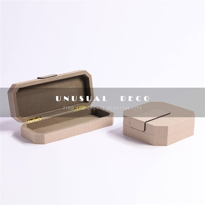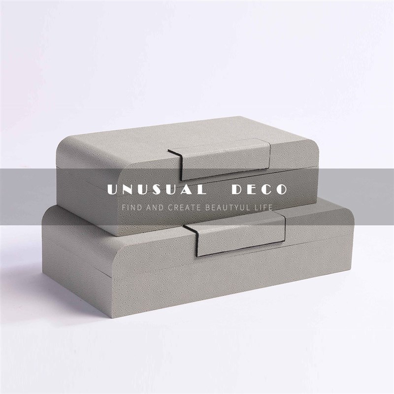 现代轻奢蓝色灰色皮革收纳盒样板间酒店民宿客厅卧W室首饰盒摆件