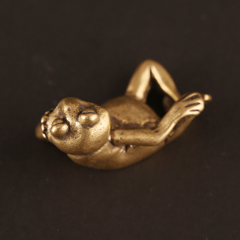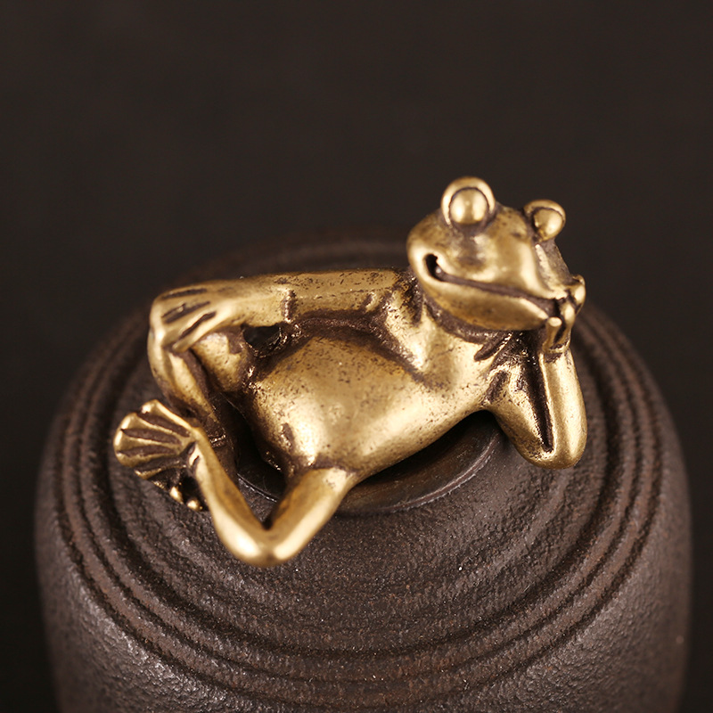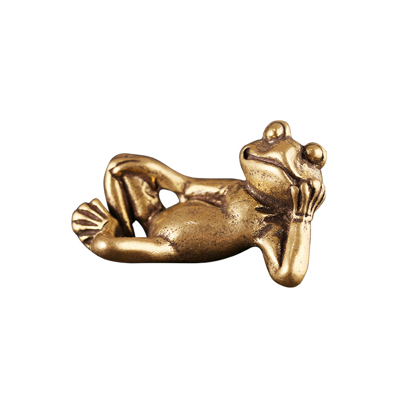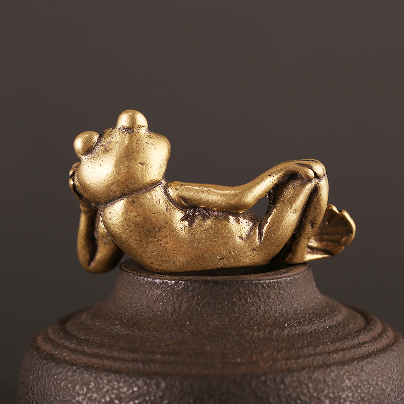 纯黄铜仿真睡美小青蛙摆件桌面茶宠创意茶宠鱼缸微景观造景装饰品