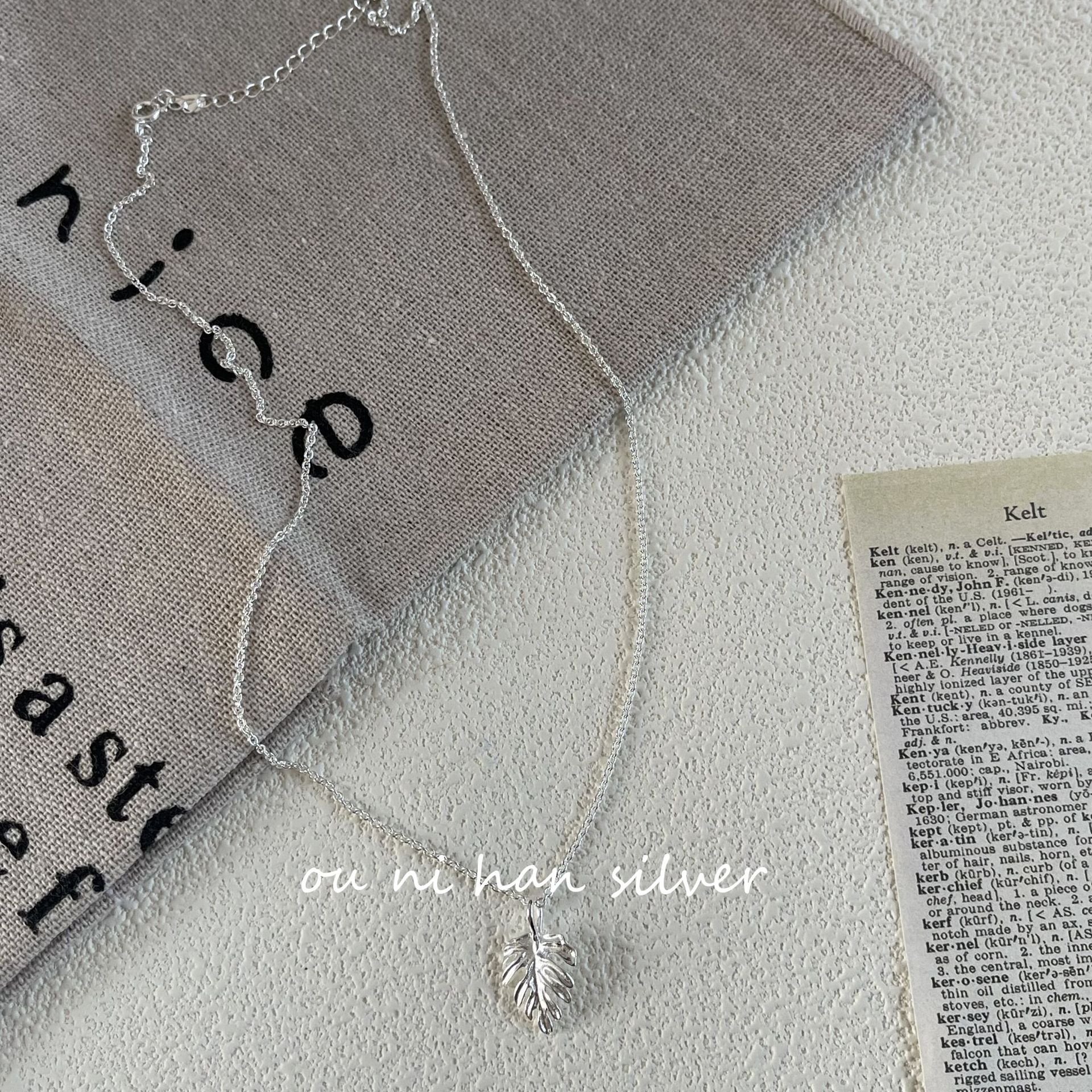 韩版S925纯银枫树叶子项链女冷淡风小众设计高级感简约百搭锁骨链