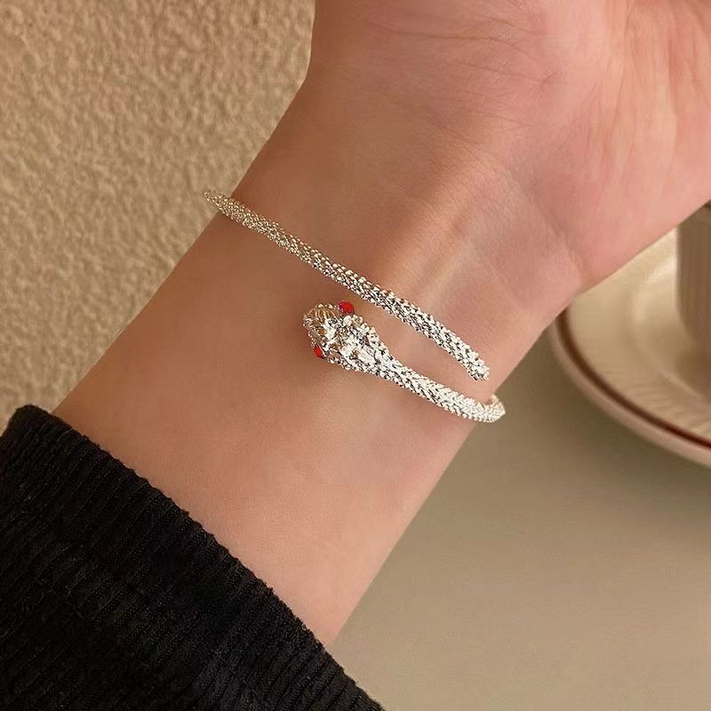 盗墓笔记银色灵蛇手镯简约高级赤眼调节纹理多层闺蜜手链长款缠绕