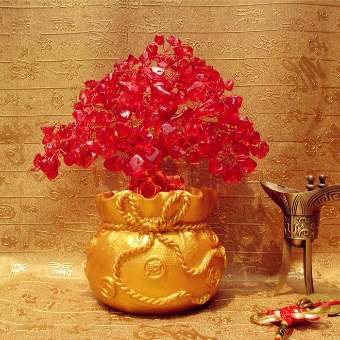 水晶摇钱树摆件招财钱袋树家居创意酒柜家装饰品客厅电视柜发财树