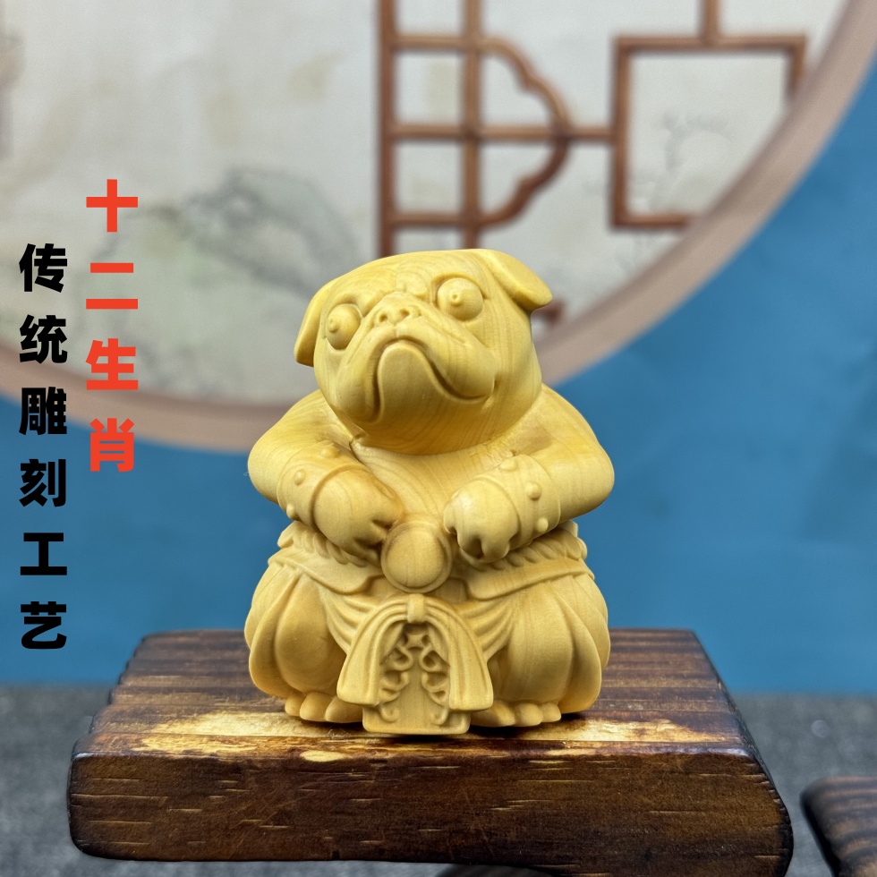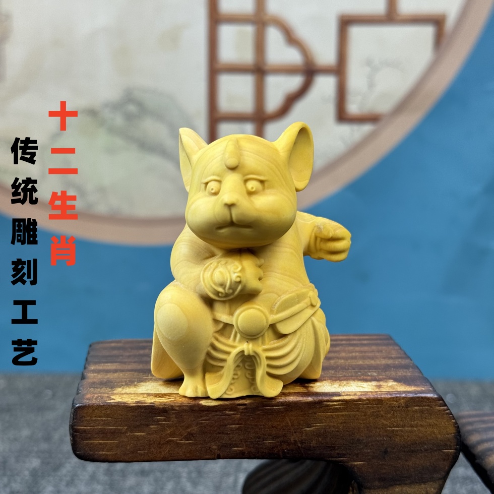 黄杨木雕刻十二生肖鼠马羊猴鸡狗猪牛虎兔龙蛇手把玩件摆件装饰品