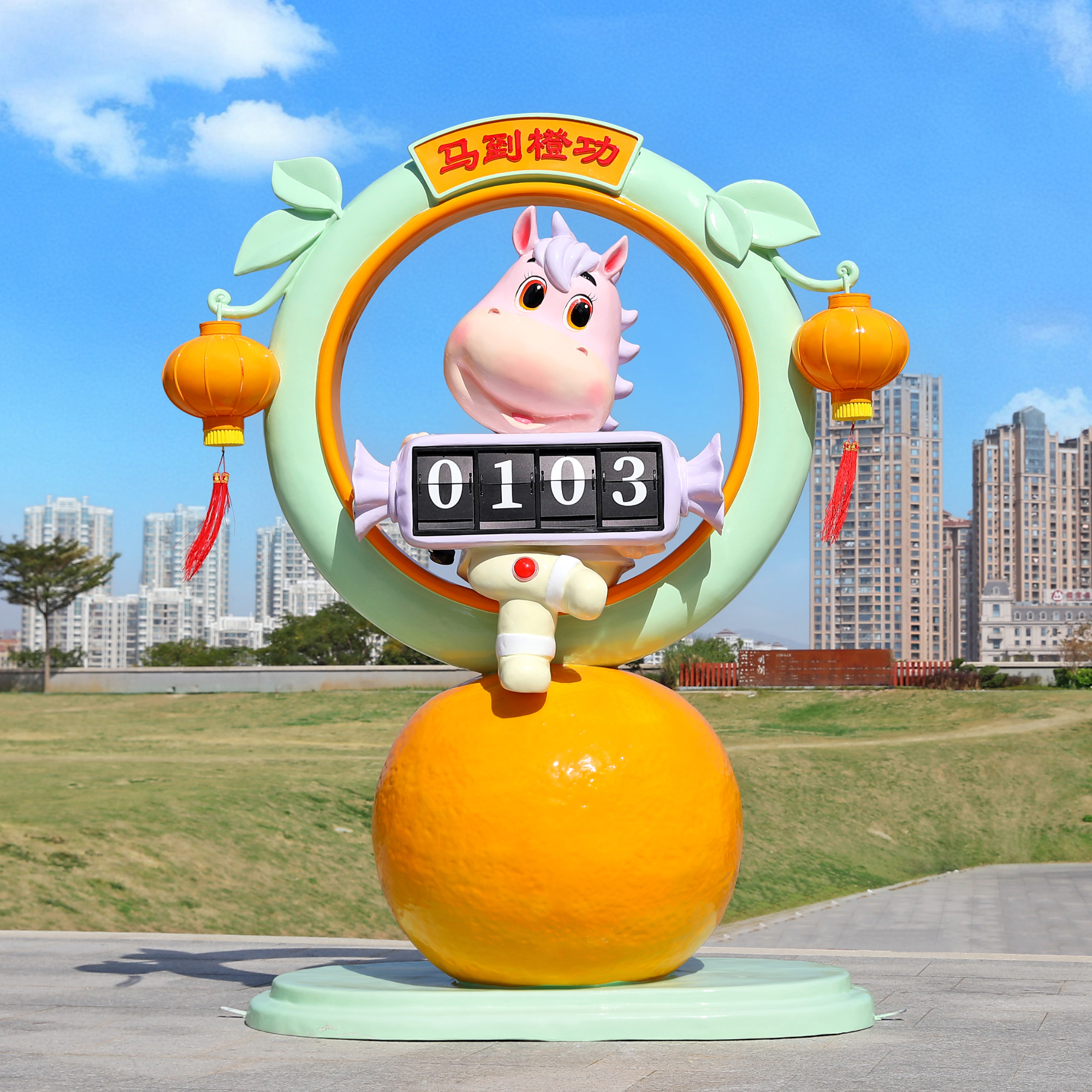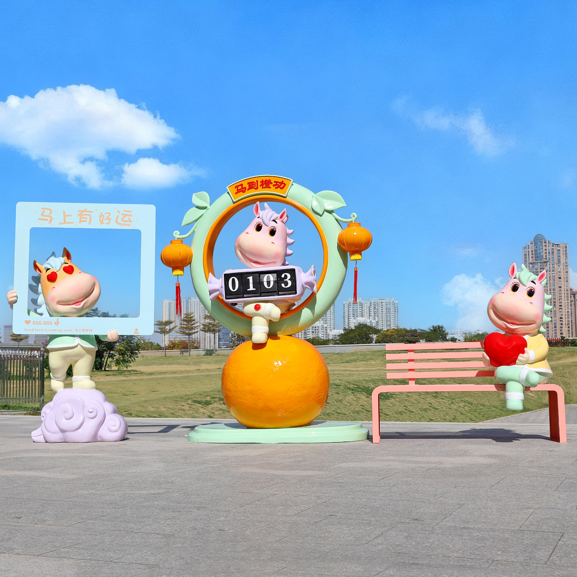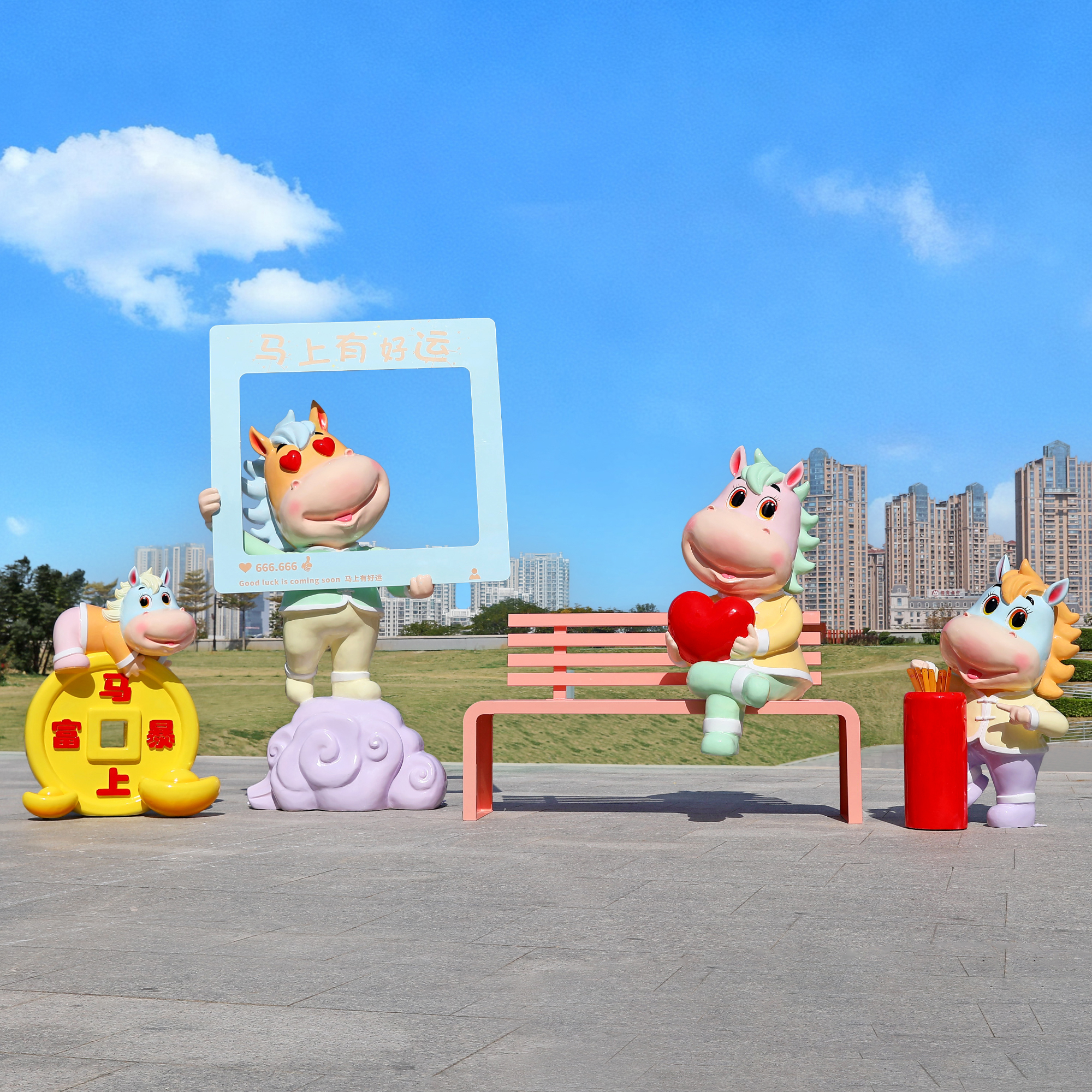 卡通新年马相框雕塑吉祥物大摆件玻璃缸户外商场装饰景区美陈广场