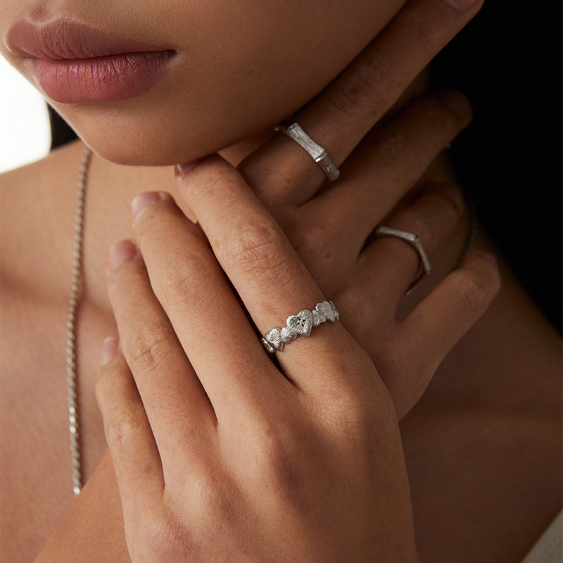 Mouhooland/暮后之地刻骨铭心爱心戒指情侣款指环拉丝工艺食指戒