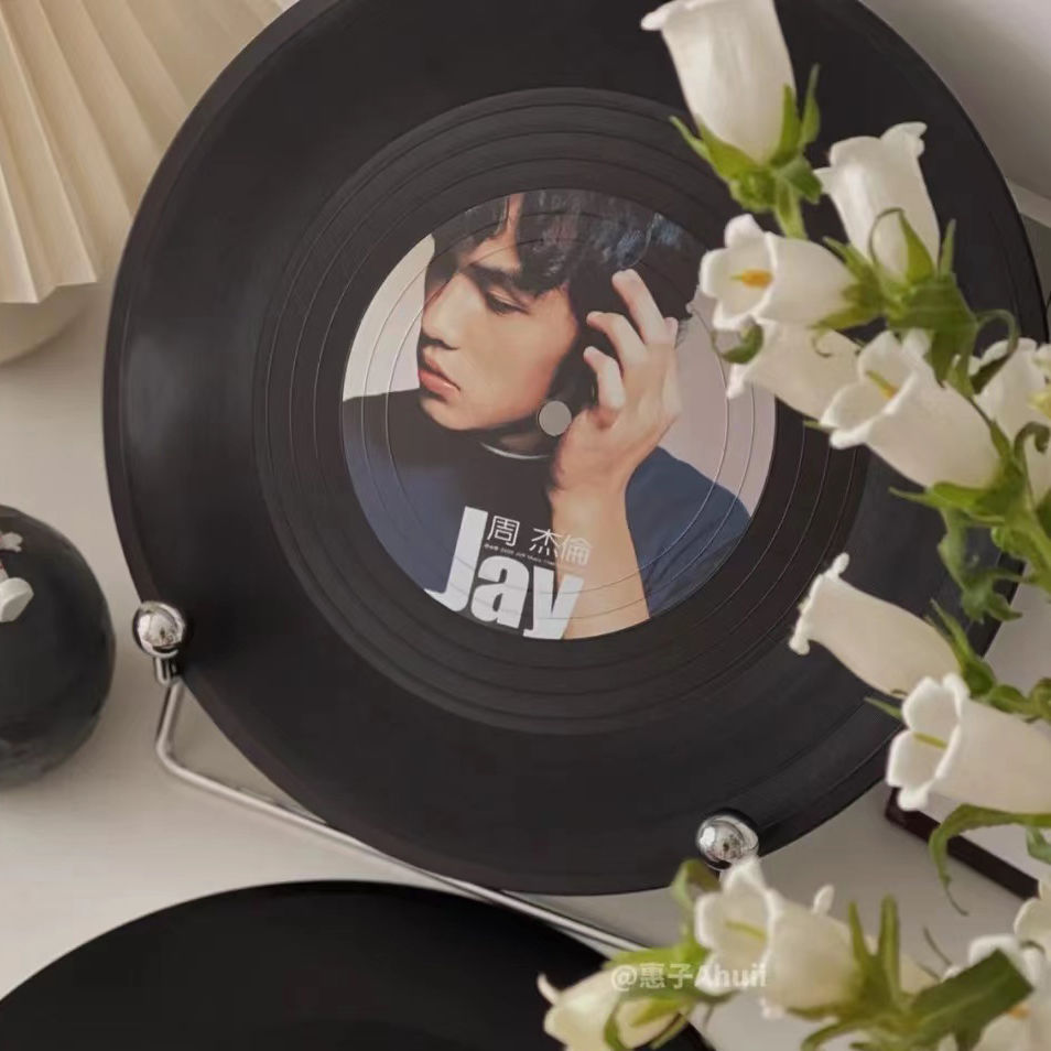 黑胶唱片DIY支架简约装饰画座架ins生日礼物网易云钟表摆件展示架