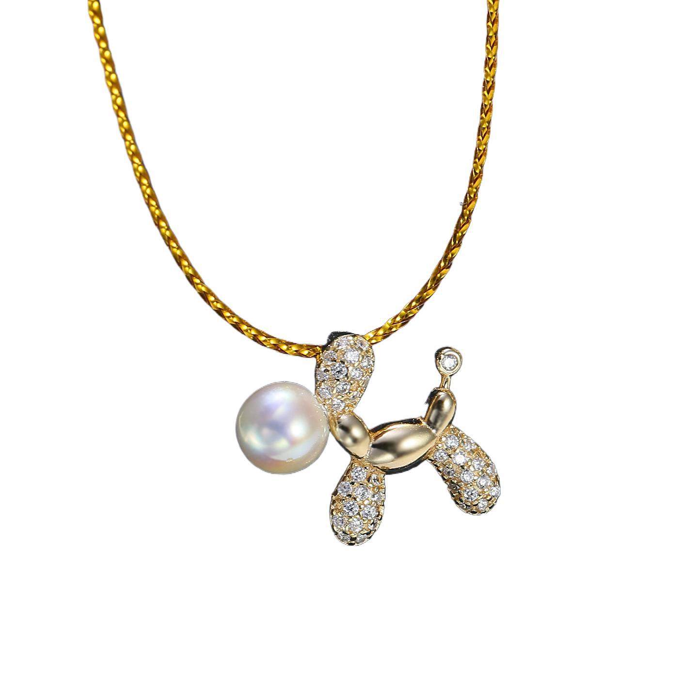 DIY配件 S925纯银可爱小狗珍珠吊坠空托 半成品项坠银托配饰4-6mm
