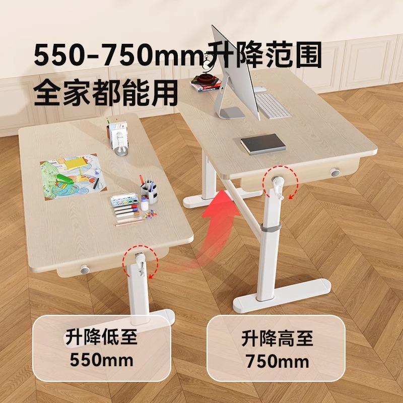 家用儿童学习桌椅套装简约大白桌可升降实木书桌学生多功能课桌椅