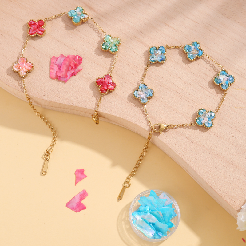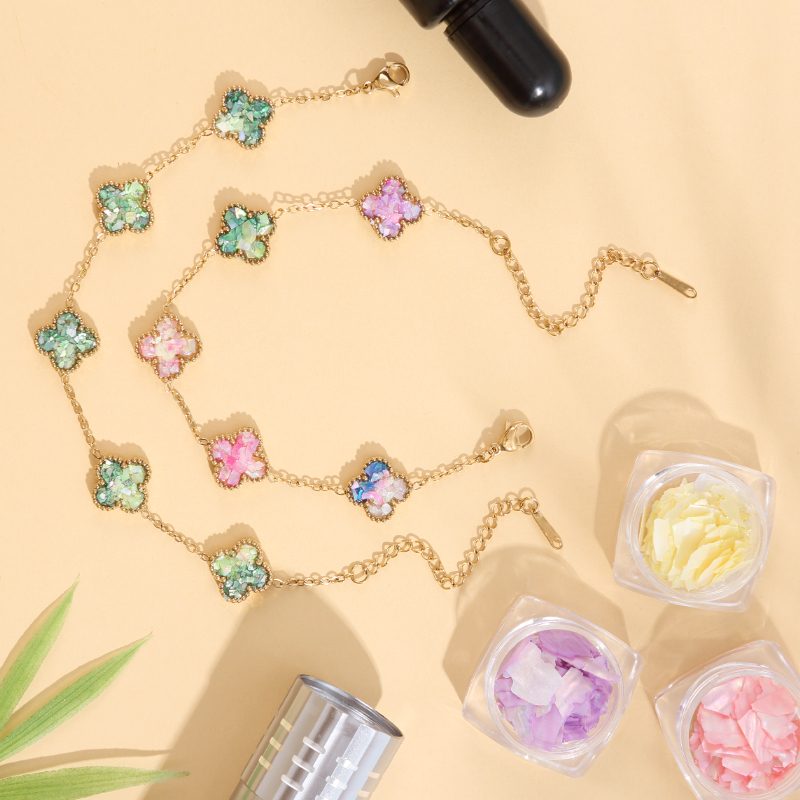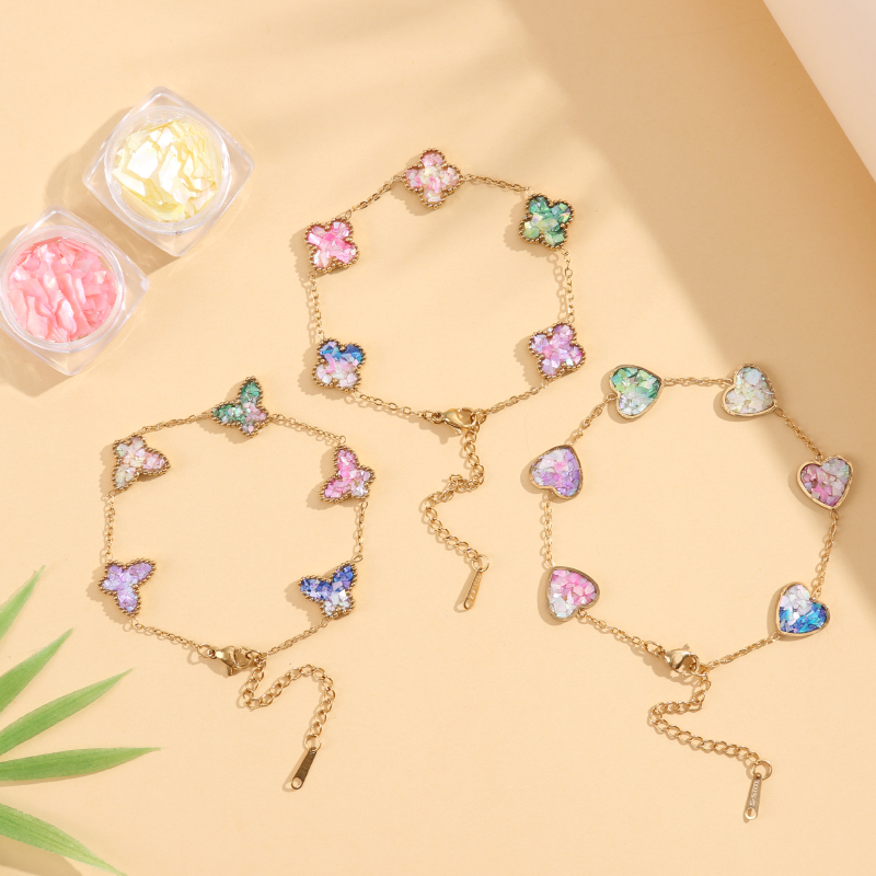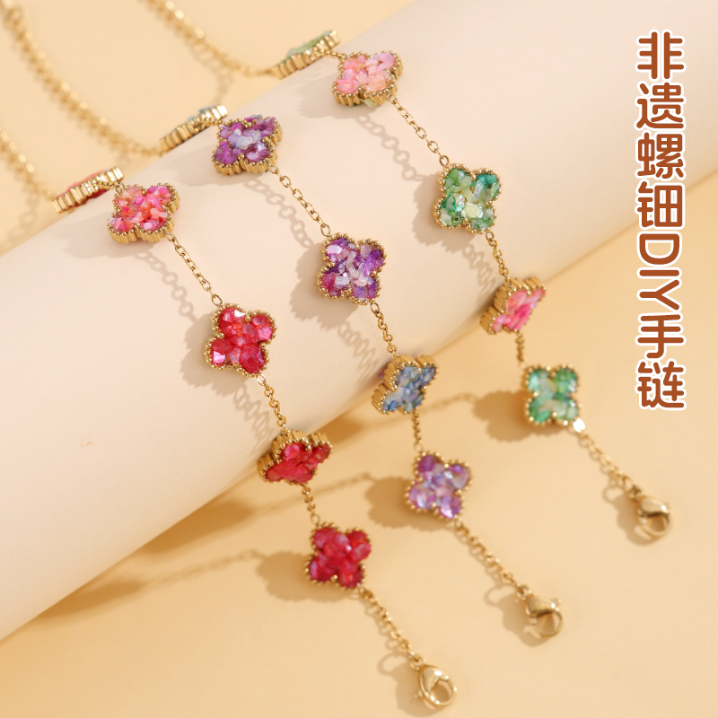 非遗手工螺钿手链diy材料包四叶草蝴蝶爱心形手链素底胚团建暖场