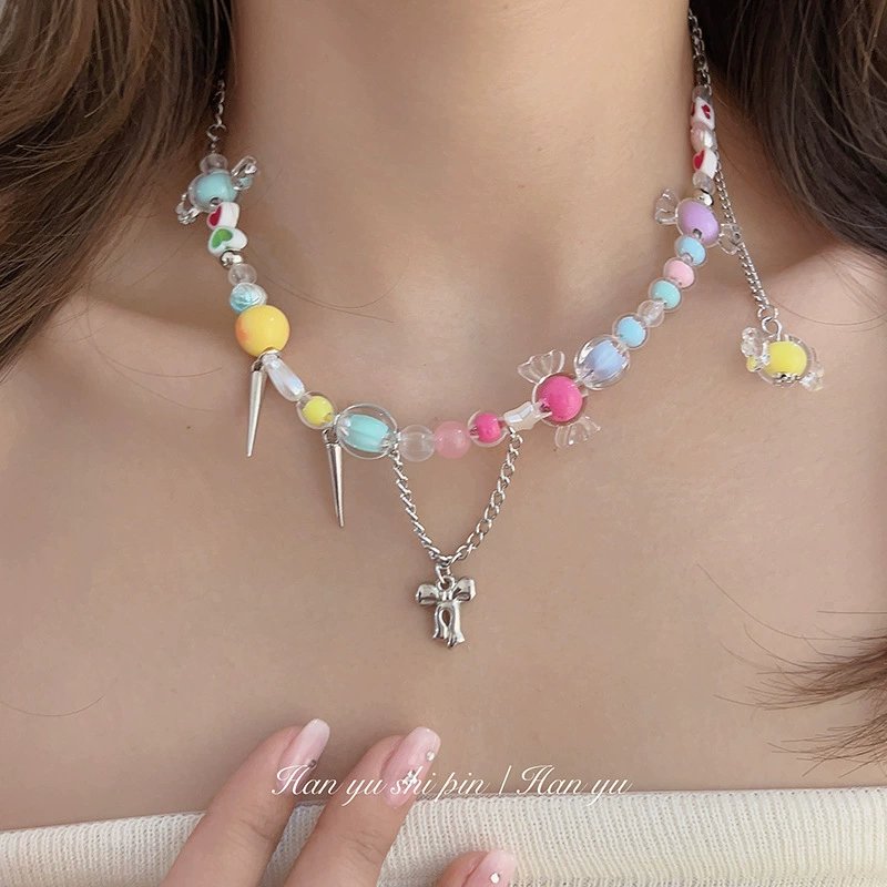 糖果乐圆项链女夏天小众设计感甜美ins彩色多巴胺串珠锁骨链手链