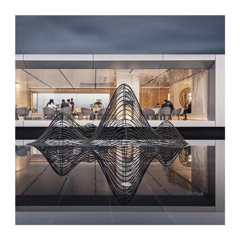 户外不锈钢镂空假山雕塑园林草坪水景钢丝线条山落地摆件装饰定制
