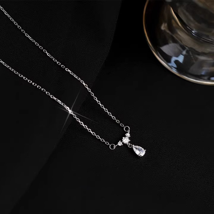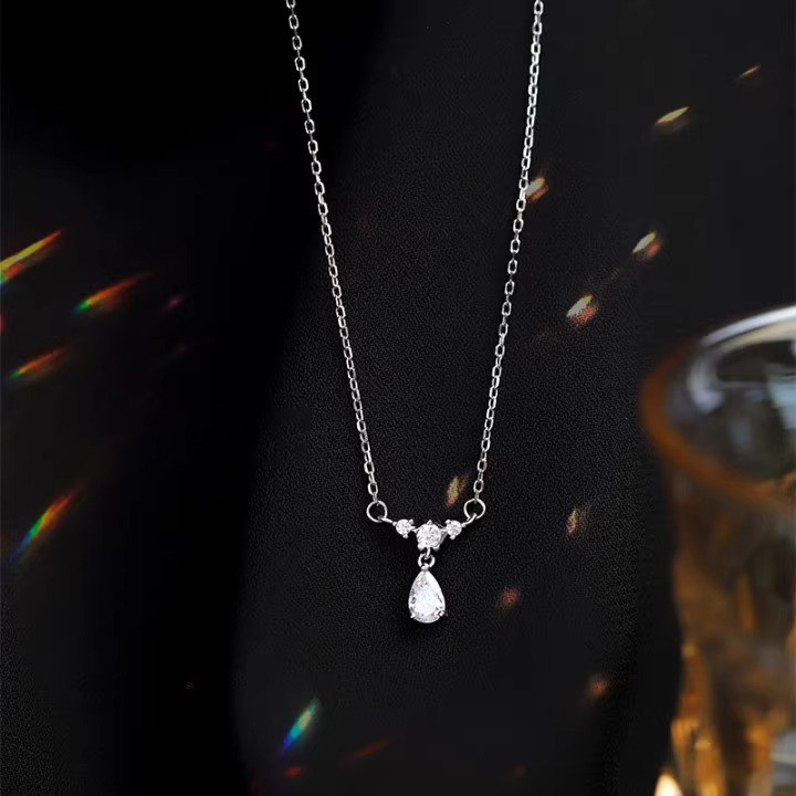 韩国银色水滴项链女小众设计感高级百搭颈链2025年新款爆款锁骨链