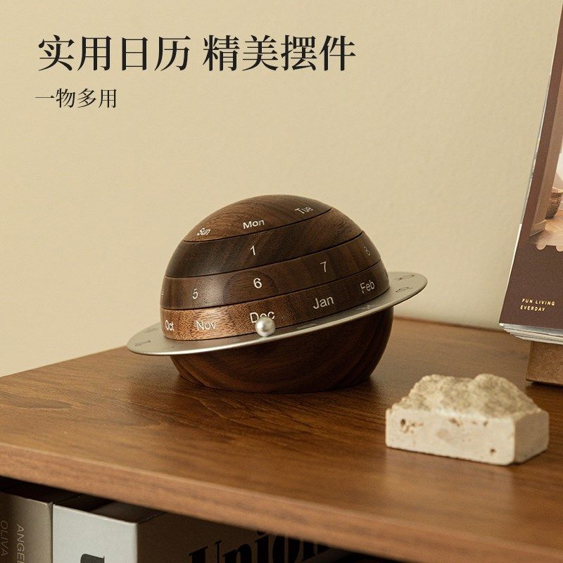 地球日历创意摆件2025年新款机械万年历实木高级复古台历开学礼物