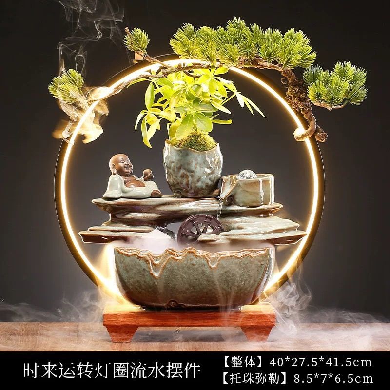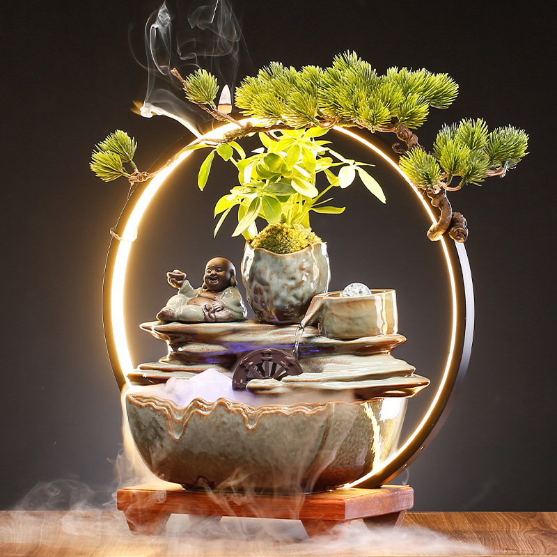 大师艺术高端新中式流水摆件造景假山陶瓷乔迁新居开业礼品