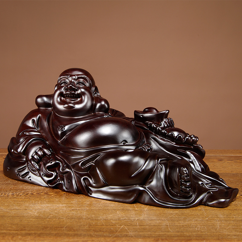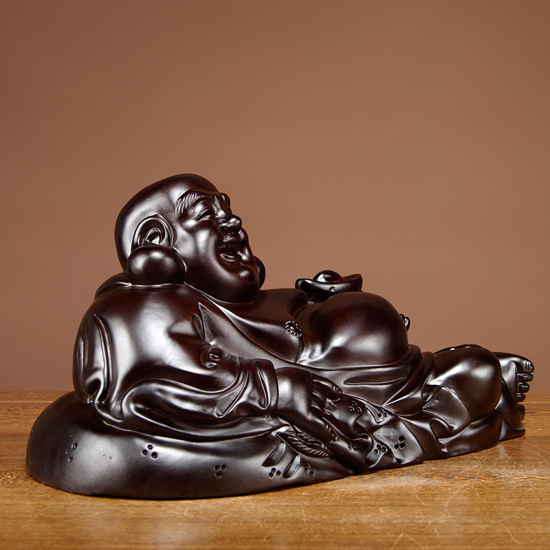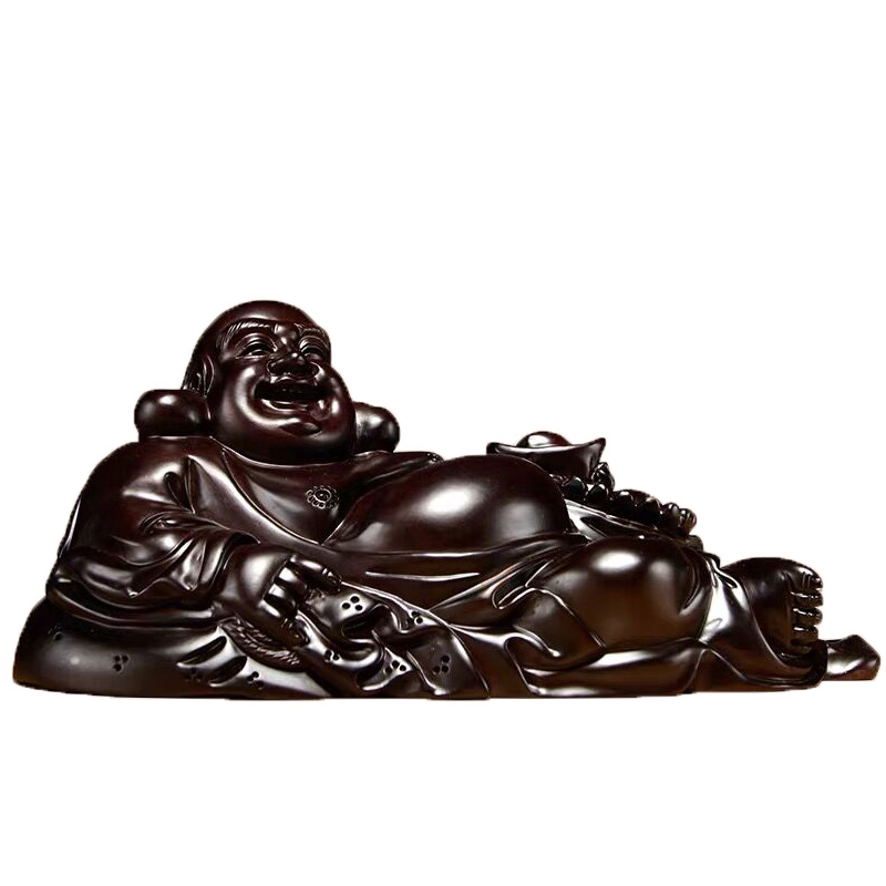 黑檀木雕弥勒佛像摆件卧式大肚坐笑佛红木工艺品实木家居客厅送礼