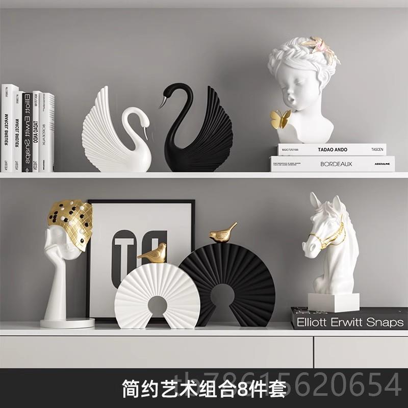 高档计师款设黑白天鹅摆件高级感房艺术居展示柜书酒家柜软装饰工