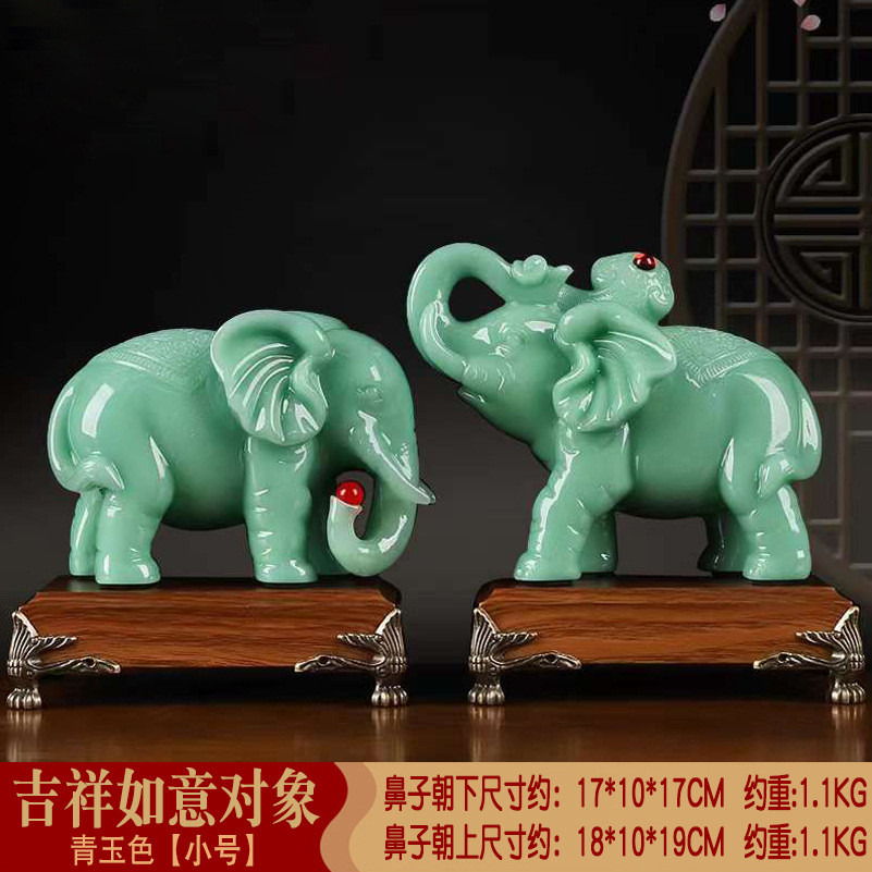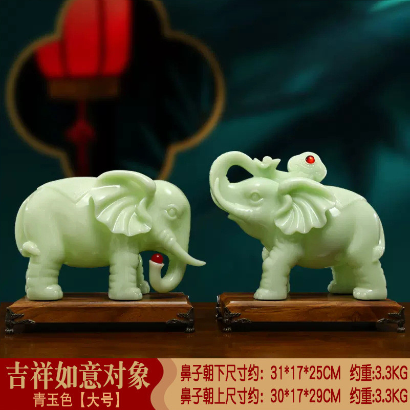 仿玉石大象一对摆件青玉色对象客厅家居装饰品办公室开业礼品乔迁