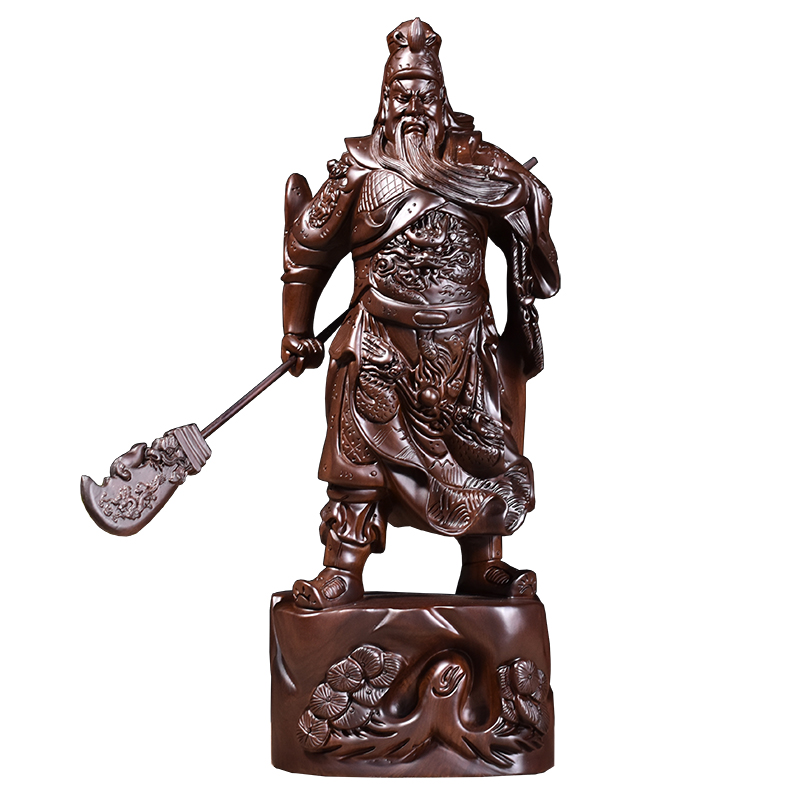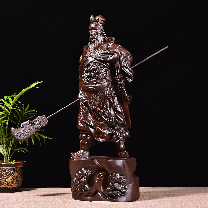黑檀木雕关公摆件实木大号财神爷神像家居装饰开业玄关红木工艺品