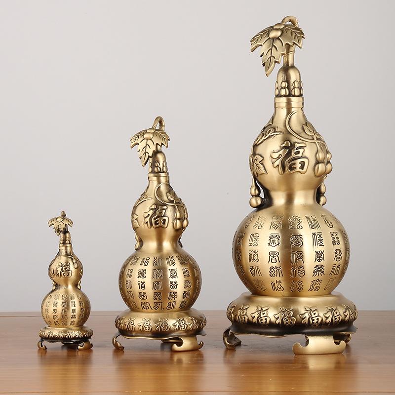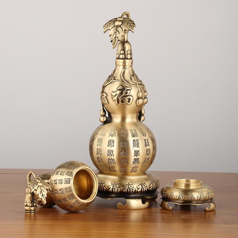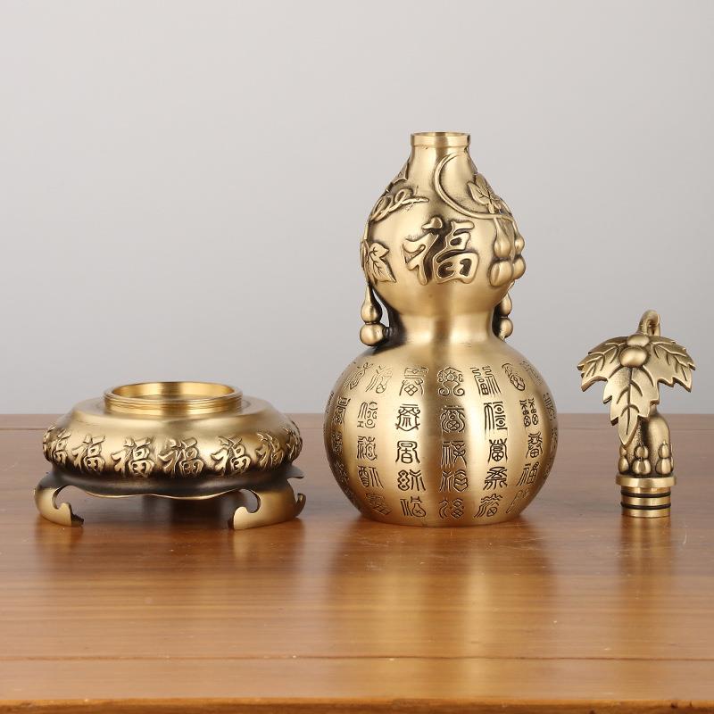 黄铜百福葫芦开盖铜葫芦开口葫芦带底座办公室客厅摆件定制