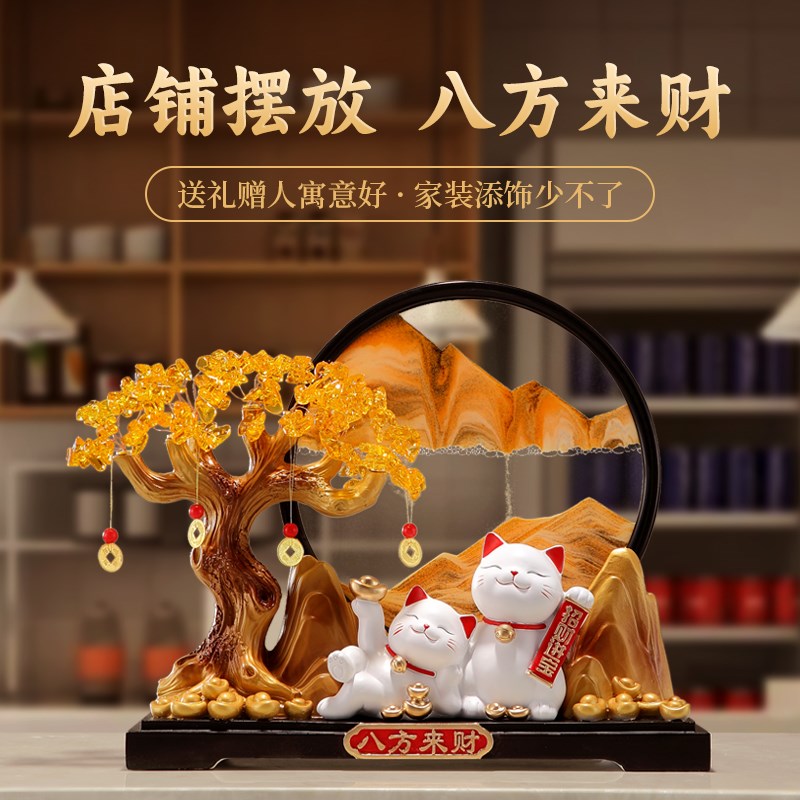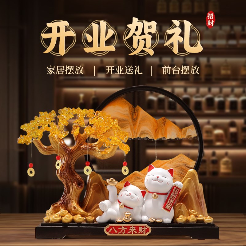 八方来财发财树招财猫摆件客厅店铺收银台高档装饰品乔迁开业礼物