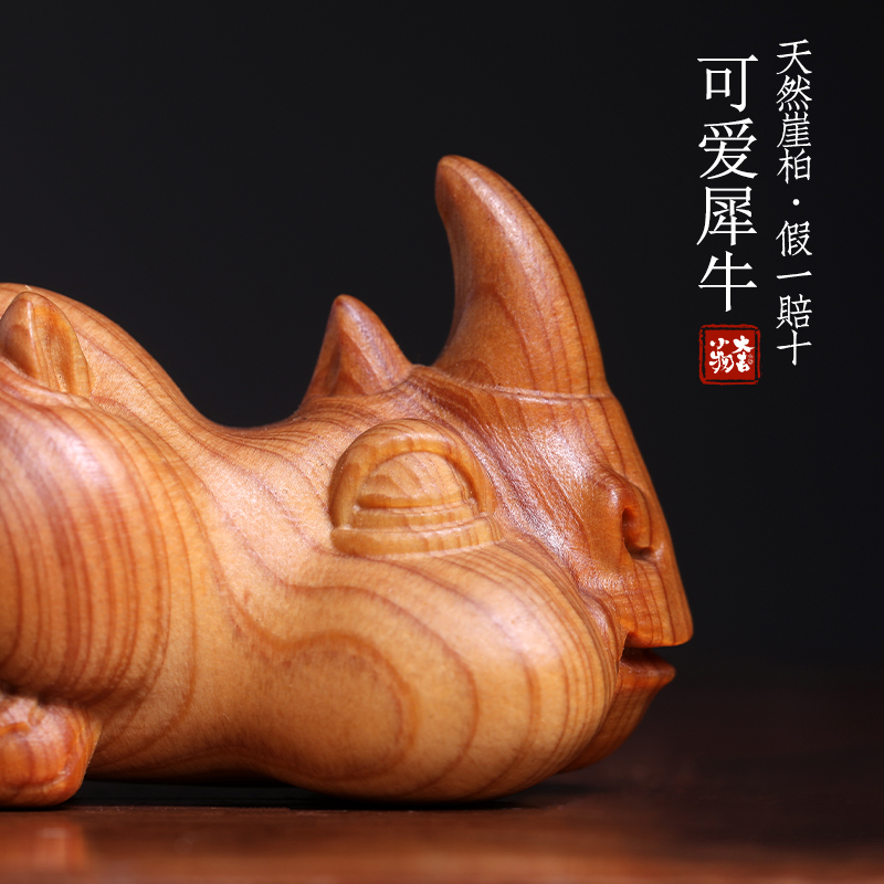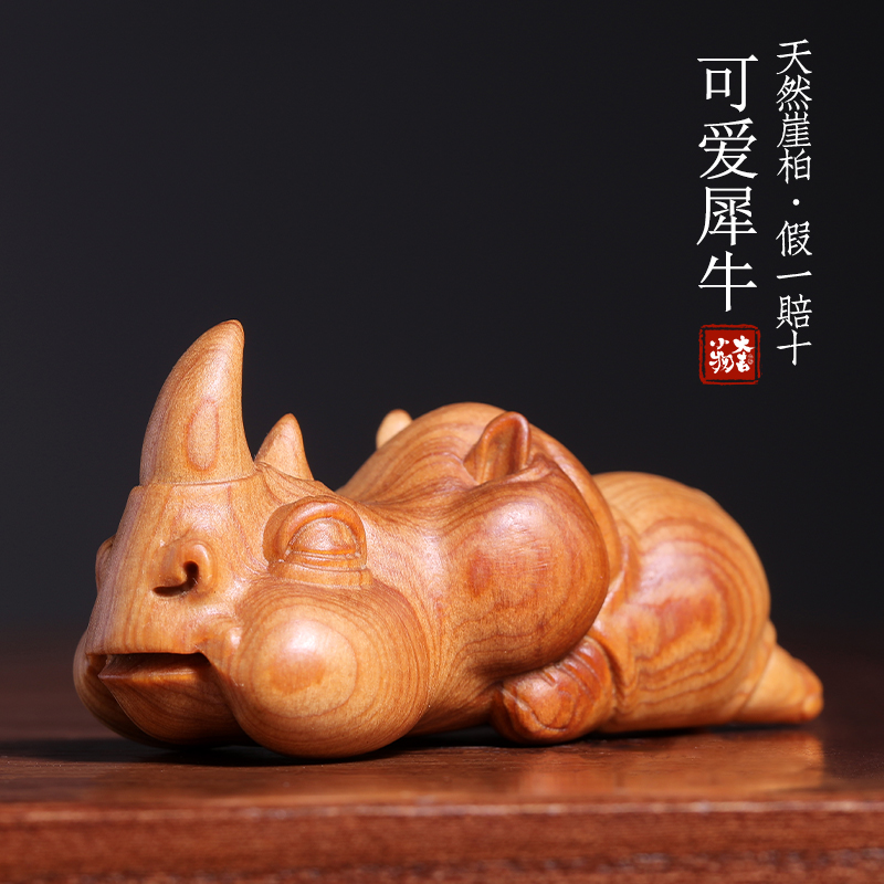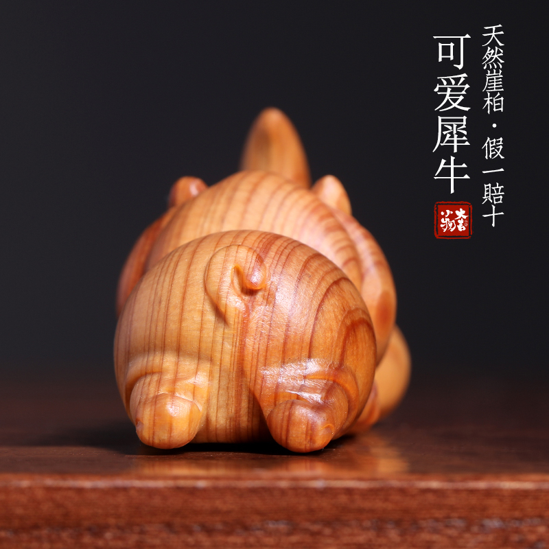 天然崖柏木雕刻犀牛小摆件办公室动物解压神器可爱茶玩茶宠手把件