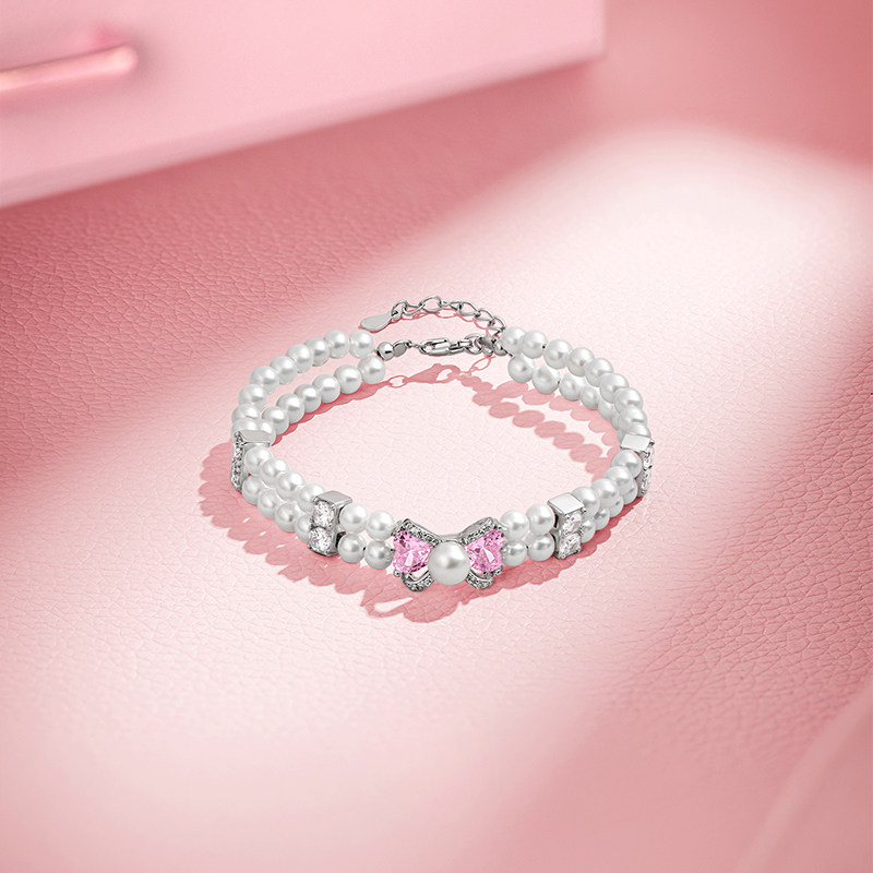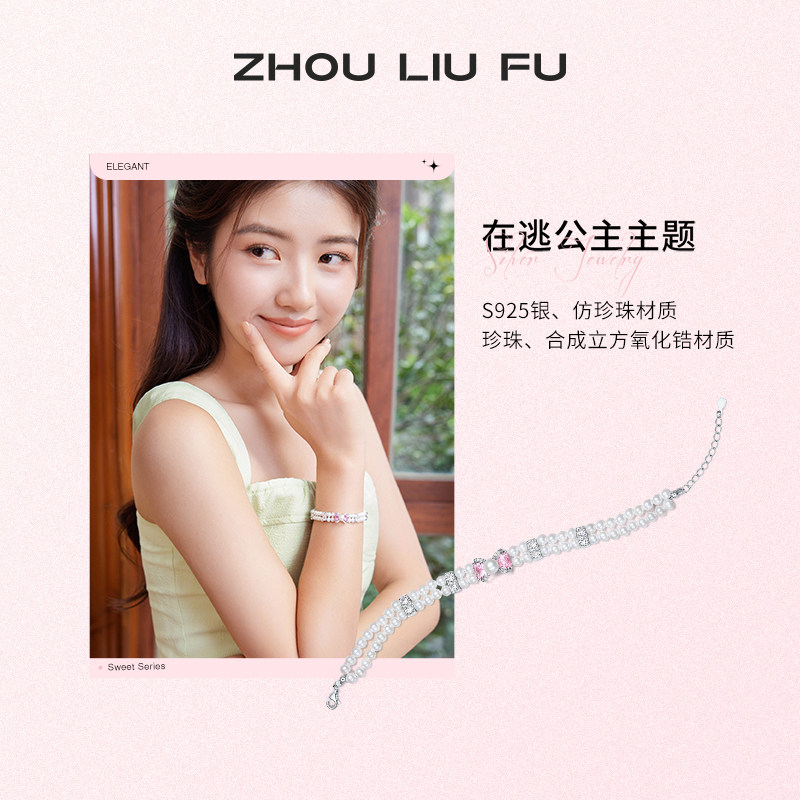 周六福S925银珍珠手链女贝珠蝴蝶结手饰优雅送女友圣诞礼物