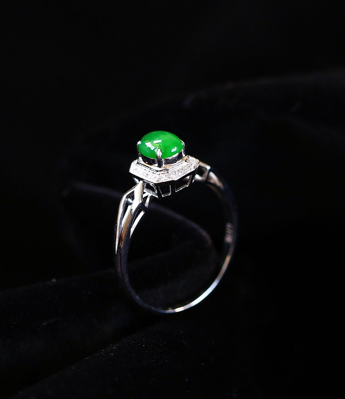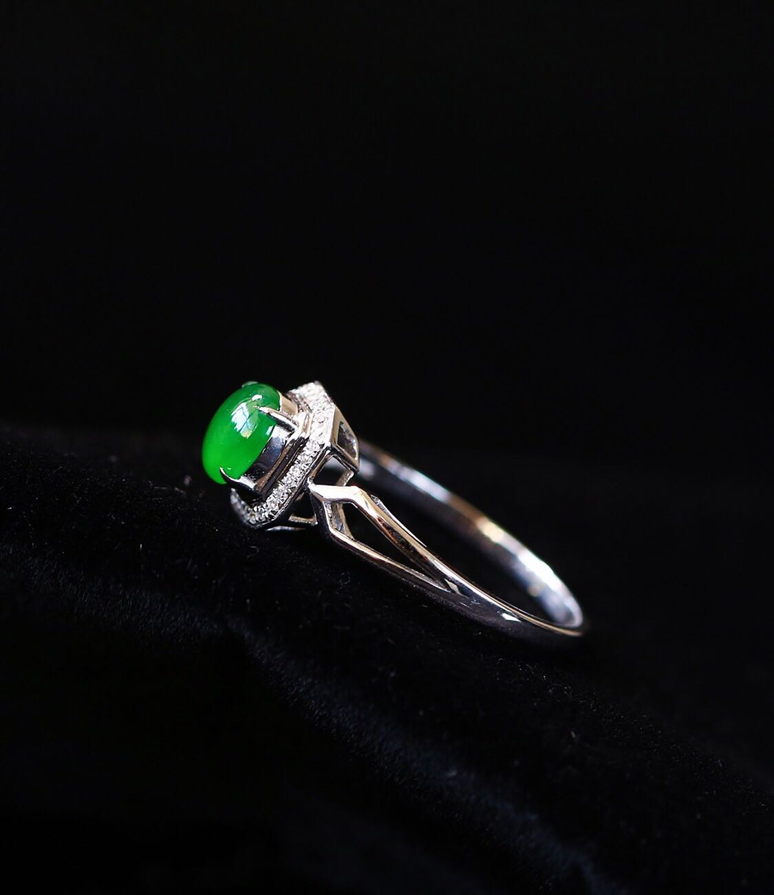 18K白金真钻石翡翠戒指高端群围镶嵌阳绿色蛋面指环国风复古高端