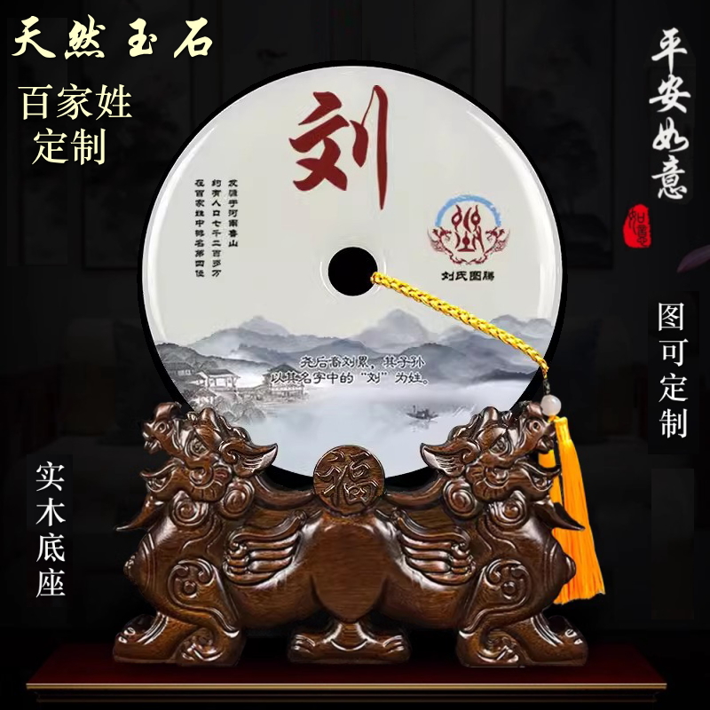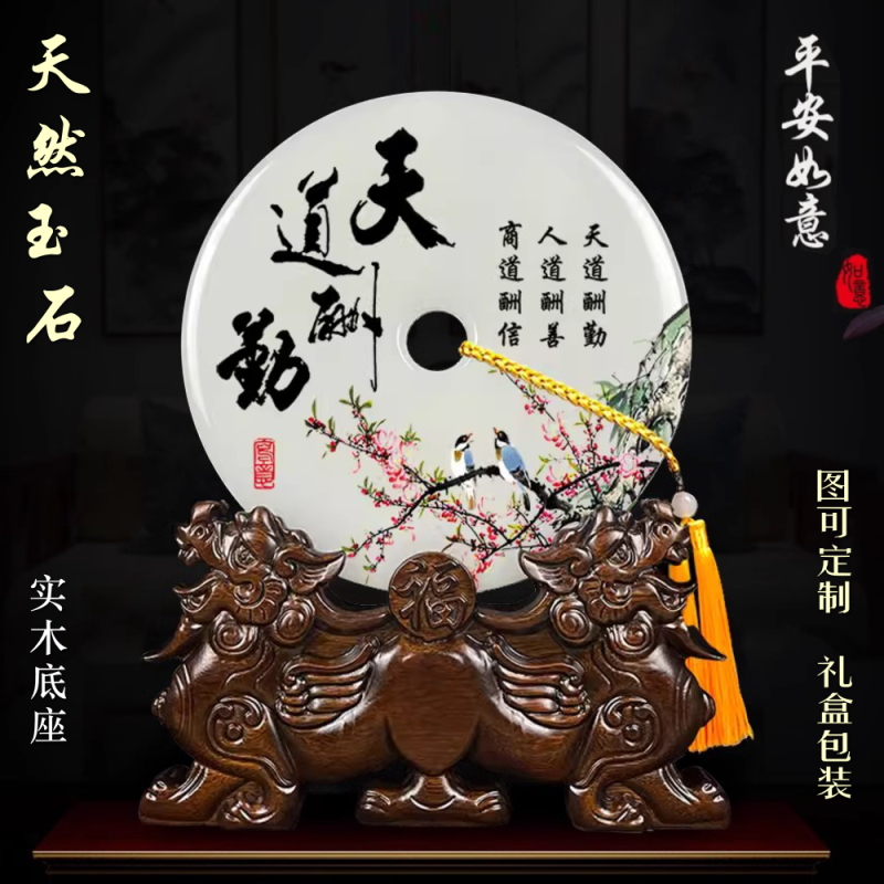 玉石平安扣貔貅实木摆件客厅玄关办公室店铺开业乔迁招财装饰礼品