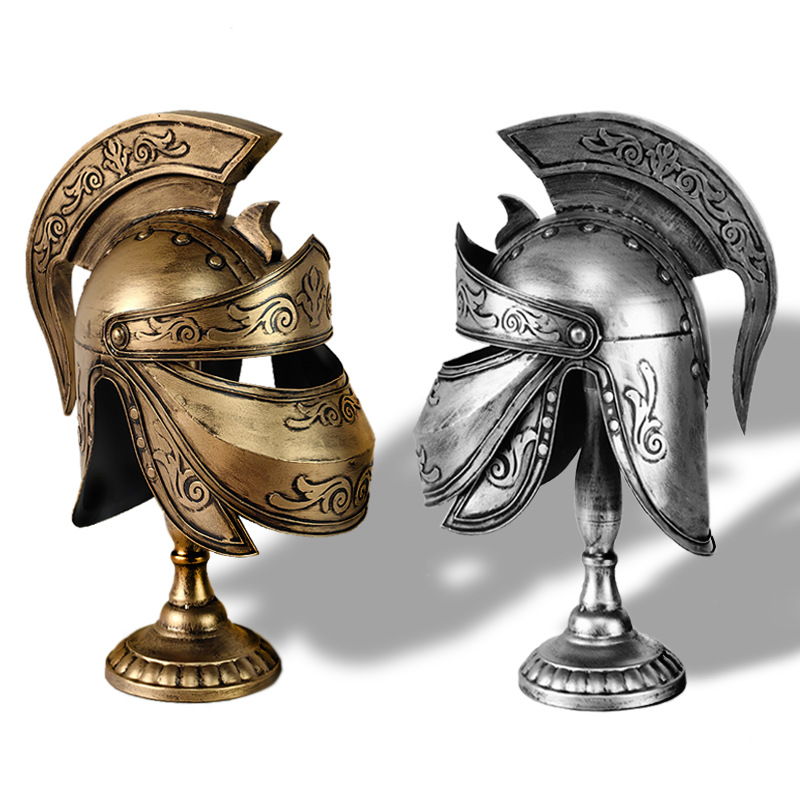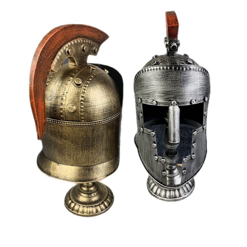 复古欧式中世纪古罗马武士头盔模型摆件创意勇士盔甲铁艺装饰品