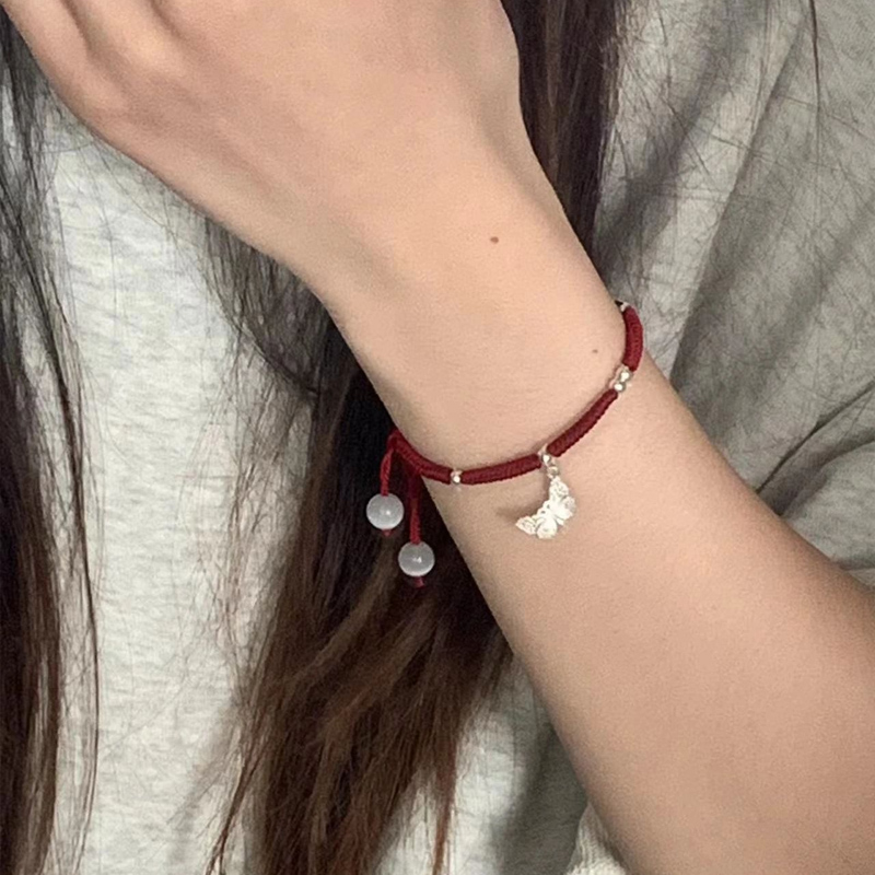红色手工编织蝴蝶手链女闺蜜学生百搭手绳高级感小众轻奢精致手饰