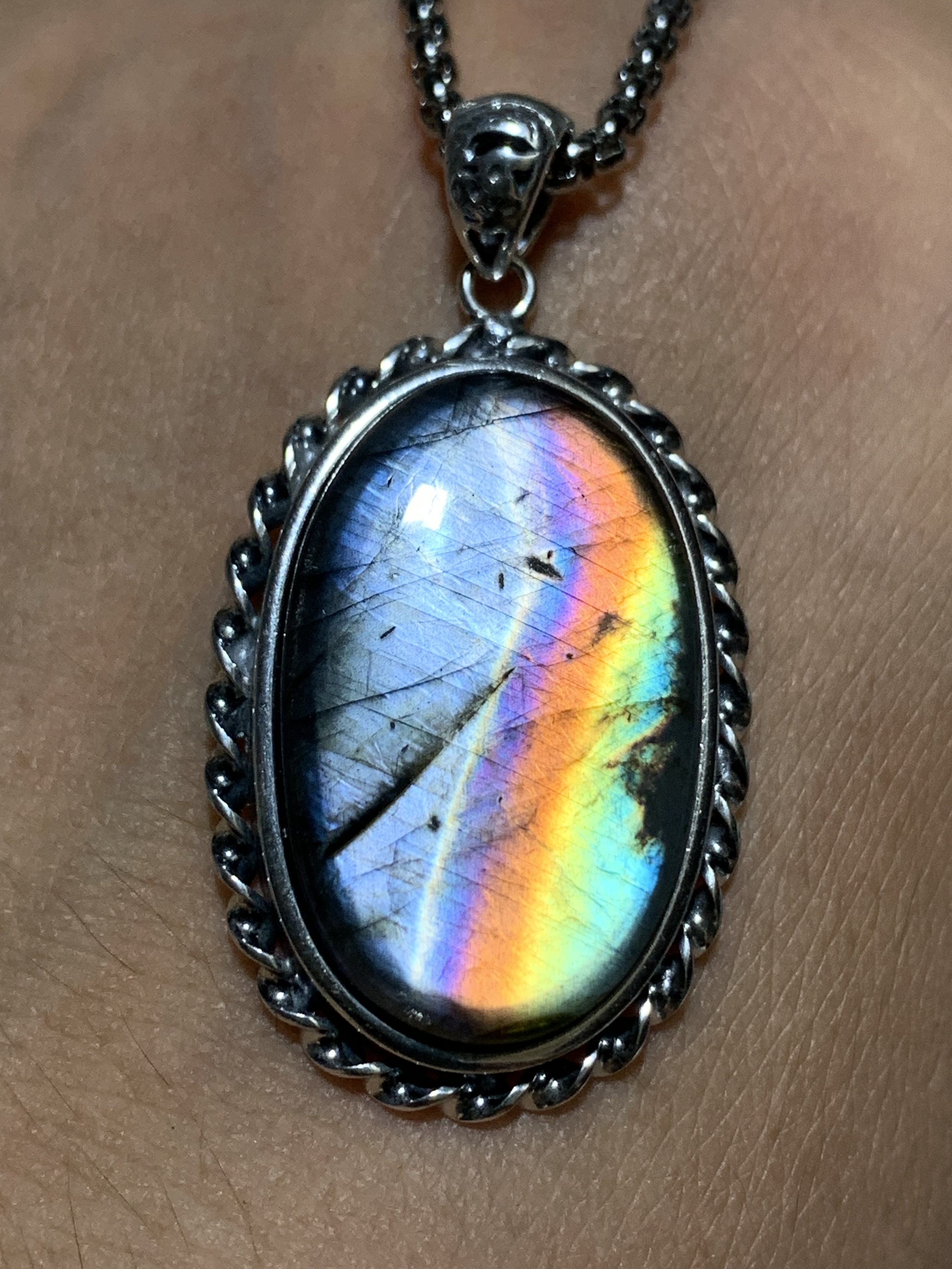 拉长石吊坠银镶嵌包边精品紫彩虹蓝黄金绿色月亮五角星椭圆水滴方