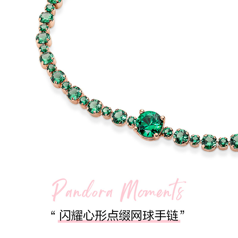 Pandora潘多拉奥莱闪耀Pavé密镶网球手链绿色素链