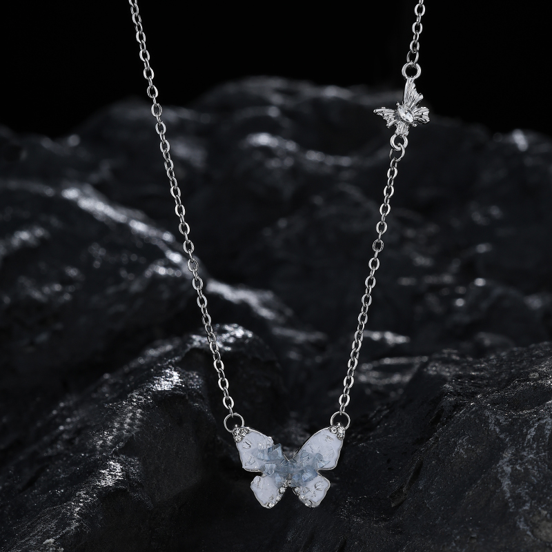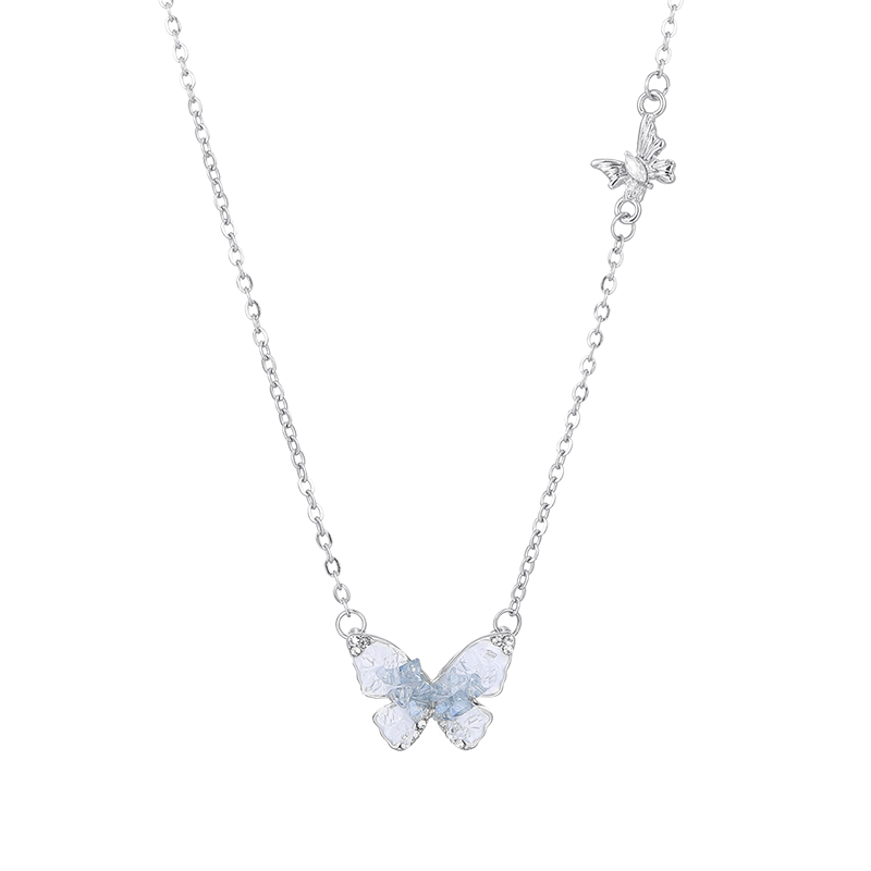 碎冰蓝蝴蝶项链女甜酷清冷感锁骨链轻奢小众高级感配裙子夏日配饰