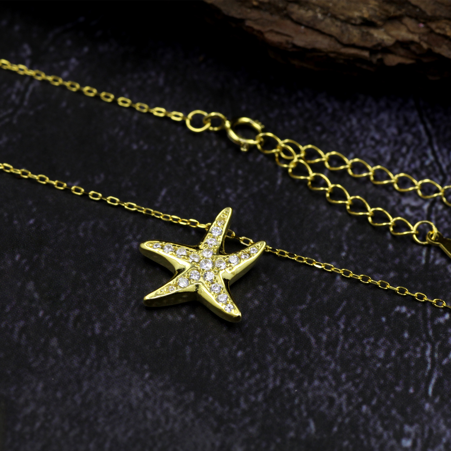 s925纯银时尚简约个性吊坠海星吊坠项链女精致可爱星星颈锁骨链