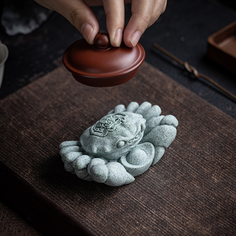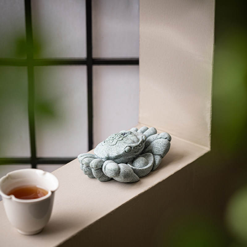 水族鱼缸造景青砂石螃蟹手握大钱办公室家居创意桌面招财摆件礼品