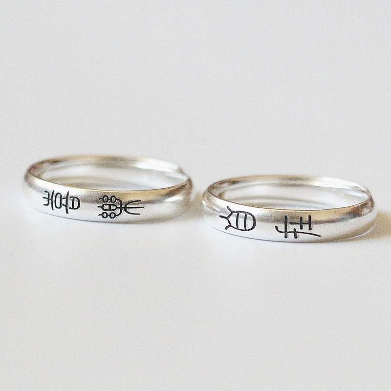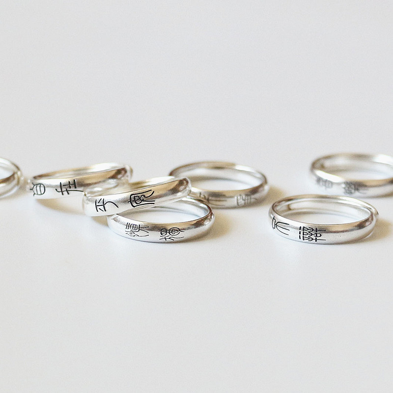 小篆体刻字戒指复古纯银S925文艺知足喜乐不辩开口男女银指环对戒