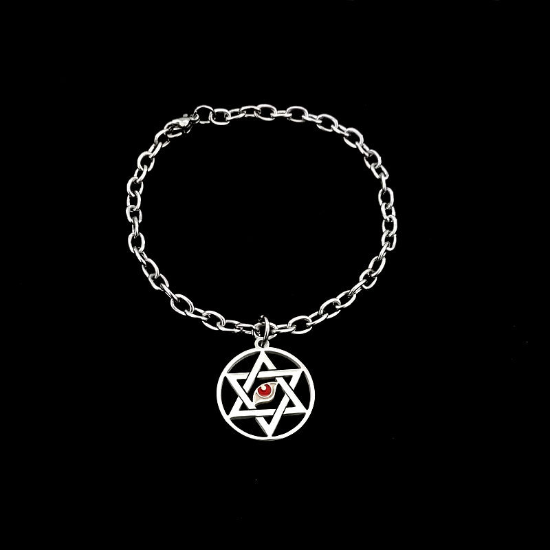 我在惊悚游戏里封神周边流浪马戏团六芒星吊坠钛钢不掉色手链配饰