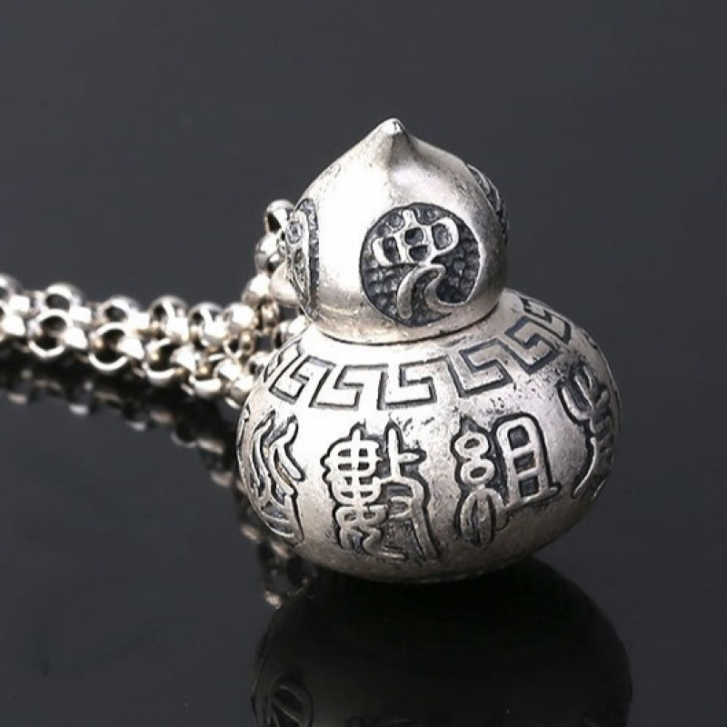 【好运】990纯银饰品九字真言葫芦吊坠泰银复古男女时尚链挂坠
