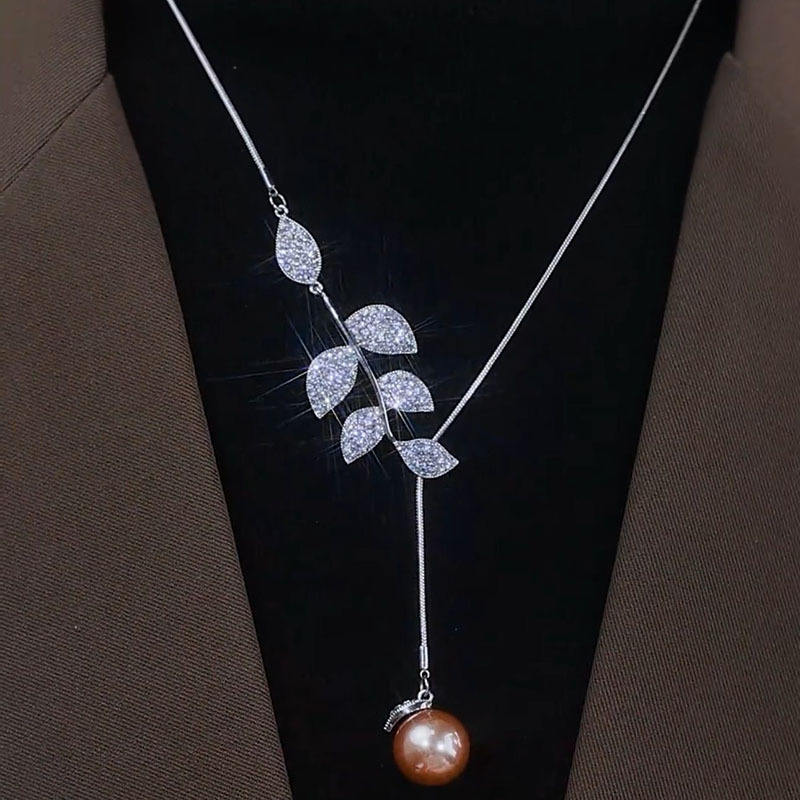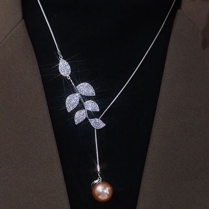 BF气质设计感满钻树叶时尚百搭款毛衣链女装饰项链珍珠吊坠挂件颈