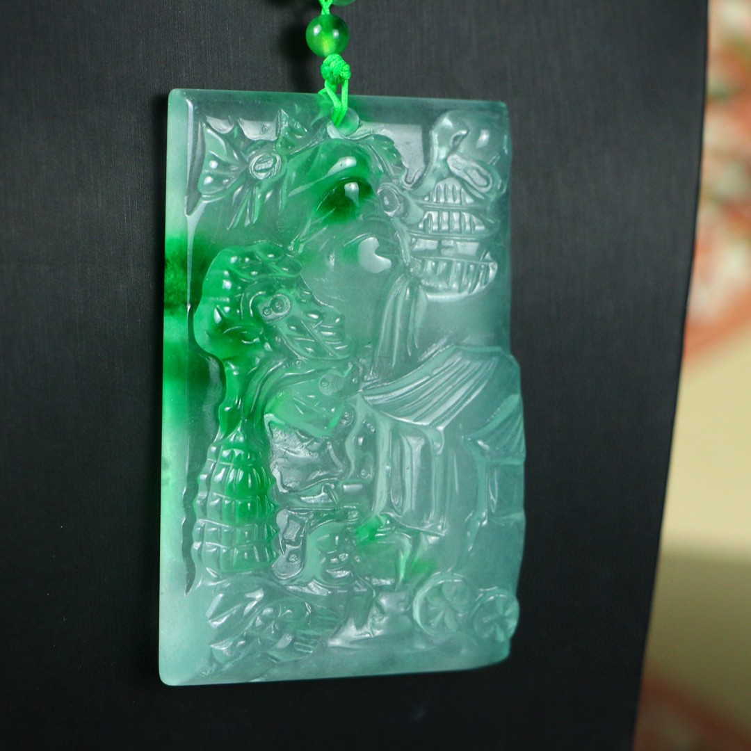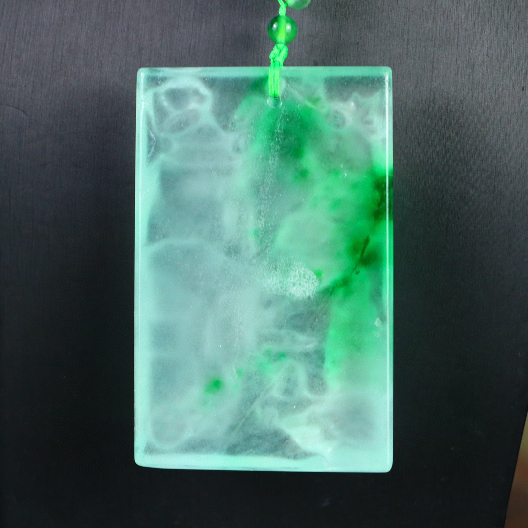 高冰飘绿玉石翠色石英岩吊坠山水牌挂件吊坠饰品大气山水牌送礼