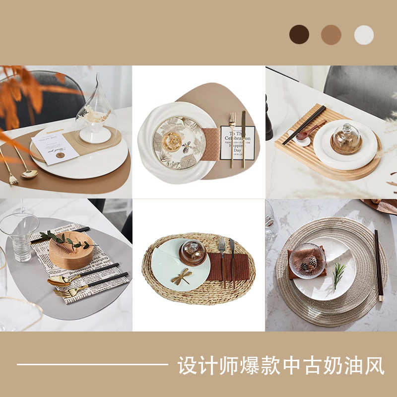 中古奶油风样板房间西式餐具套装灰展厅装饰餐桌餐盘摆台摆件