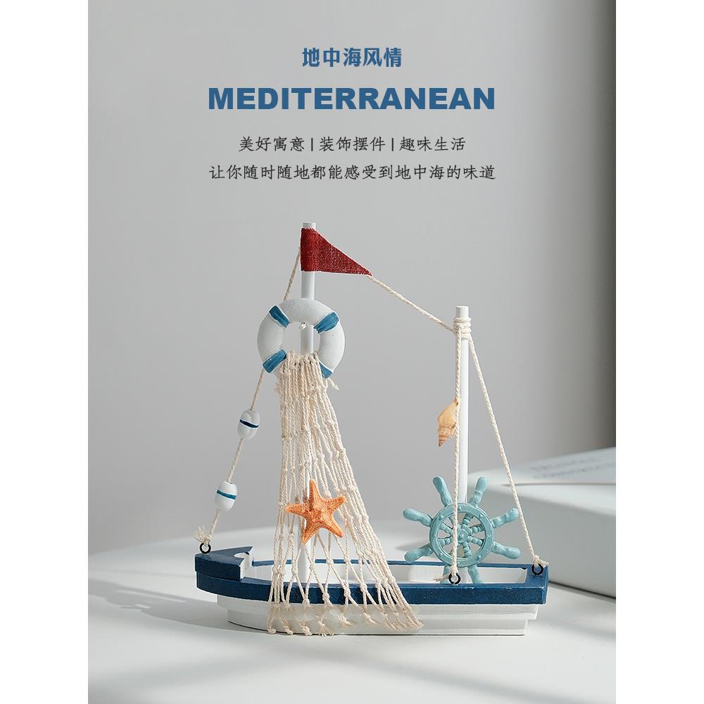 地中海帆船模型一帆风顺船创意桌面摆件摆设木质小木船装饰工艺品