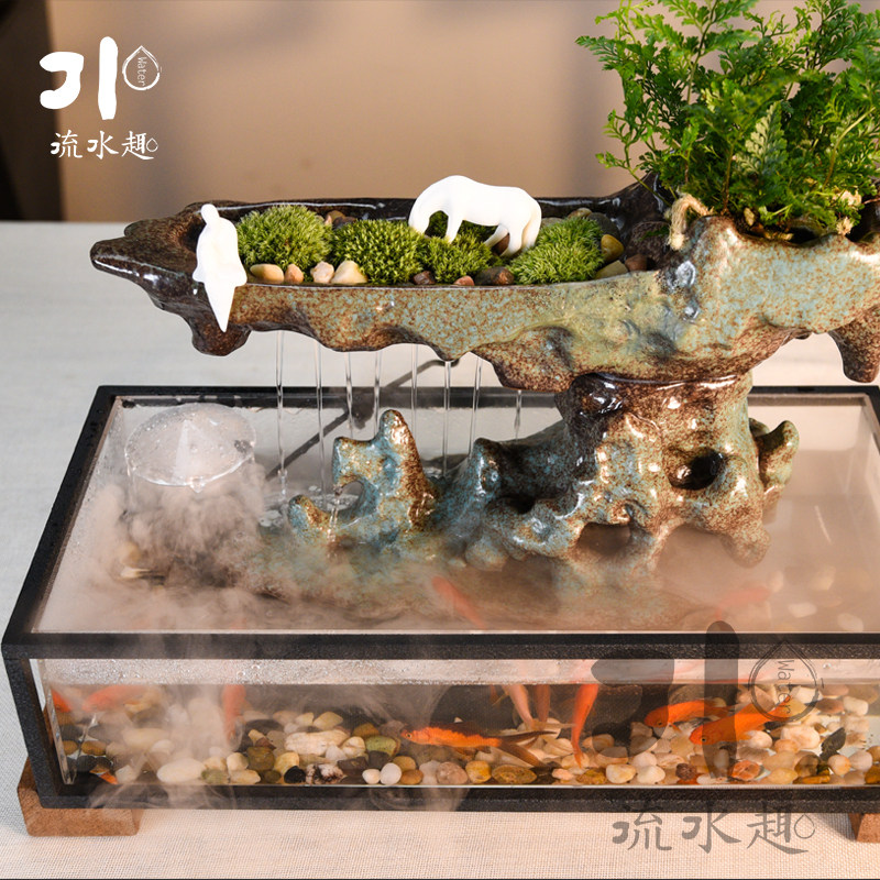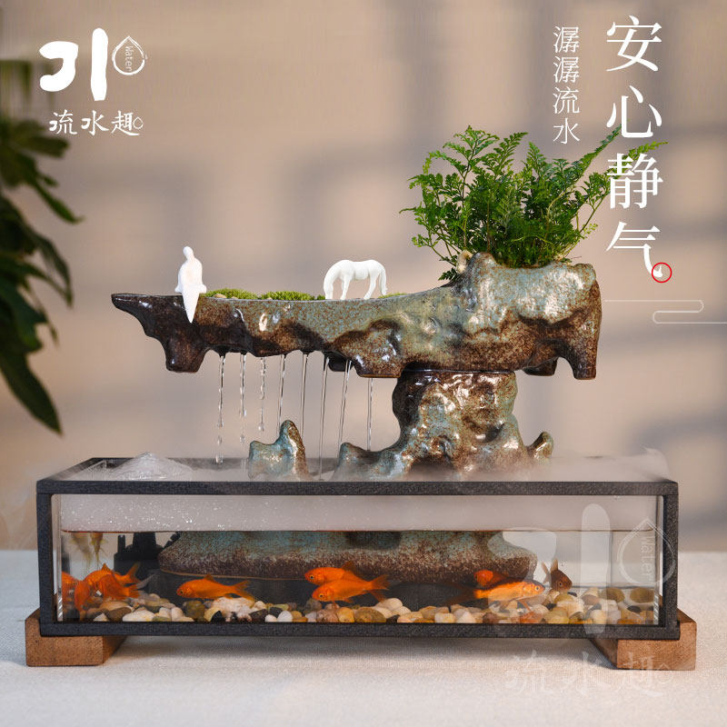 流水趣 流水器桌面办公室鱼缸客厅装饰开业乔迁中式创意礼品摆件