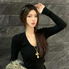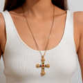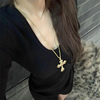 金色中古亚文化十字架吊坠项链y2k千禧甜酷风辣妹颈链长款锁骨链