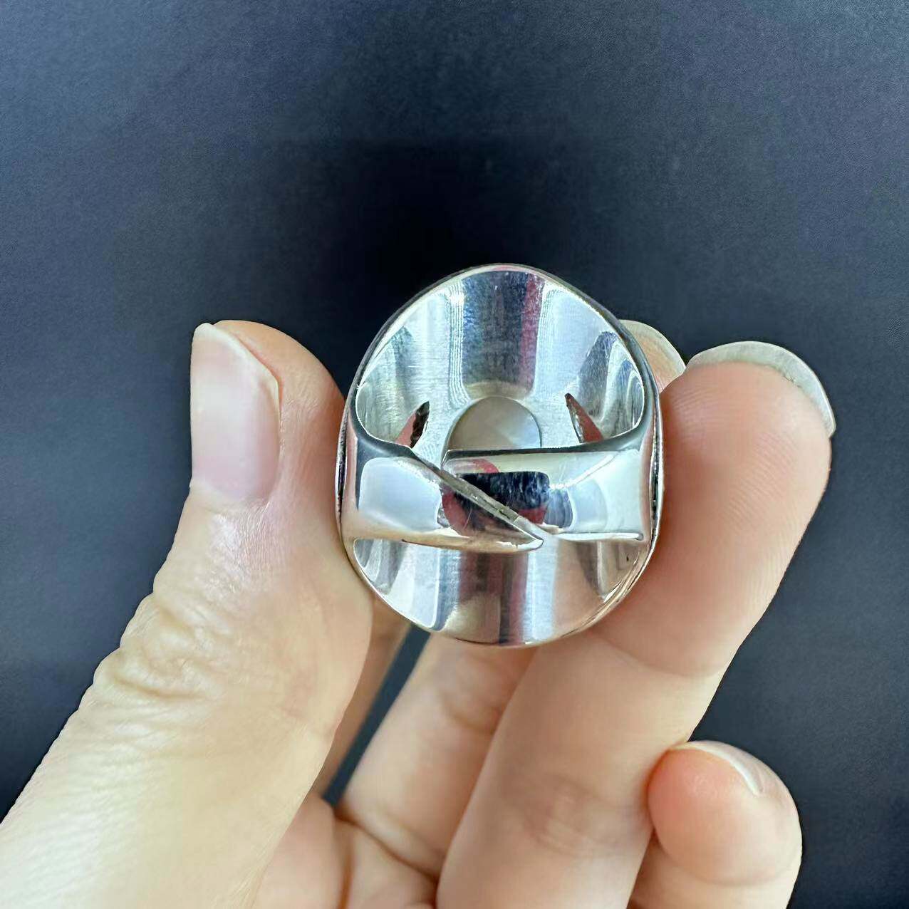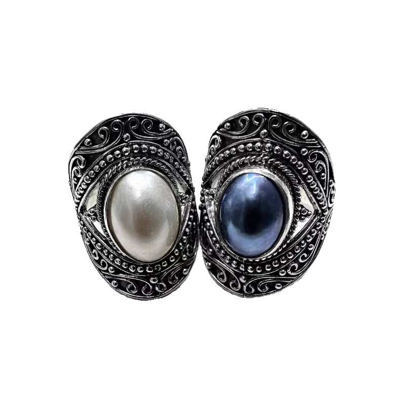 椭圆马贝活口大戒指 蓝色白色 巴厘岛工艺925纯银 异域风男女饰品