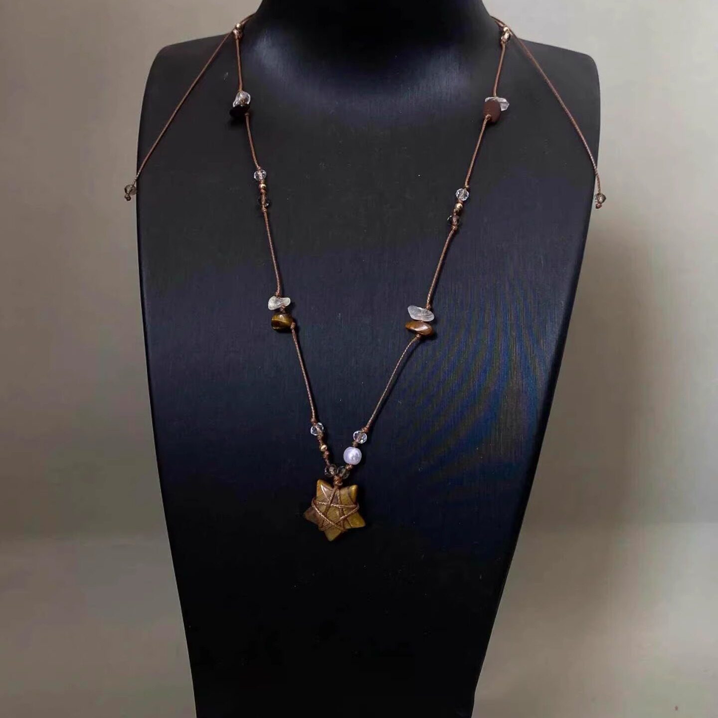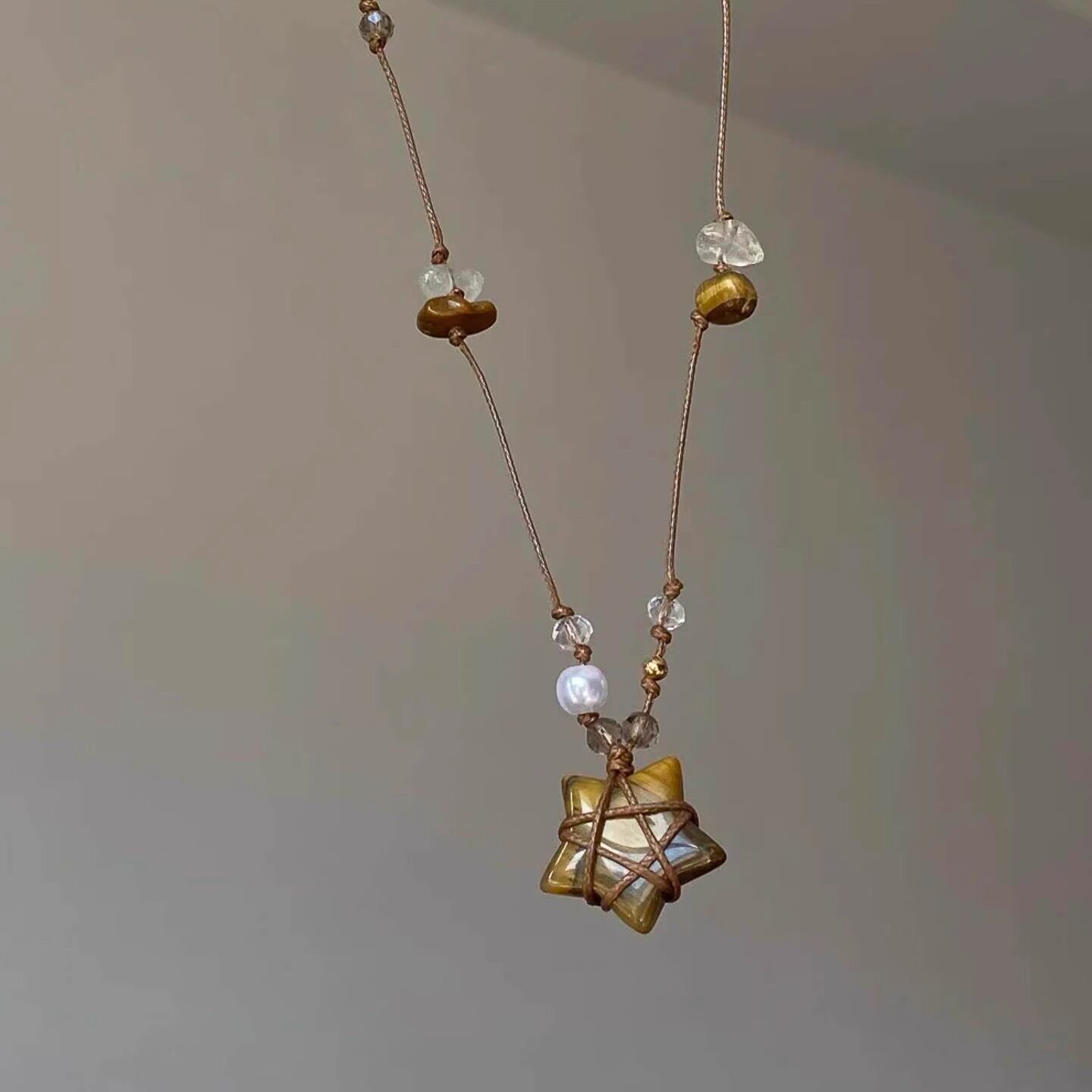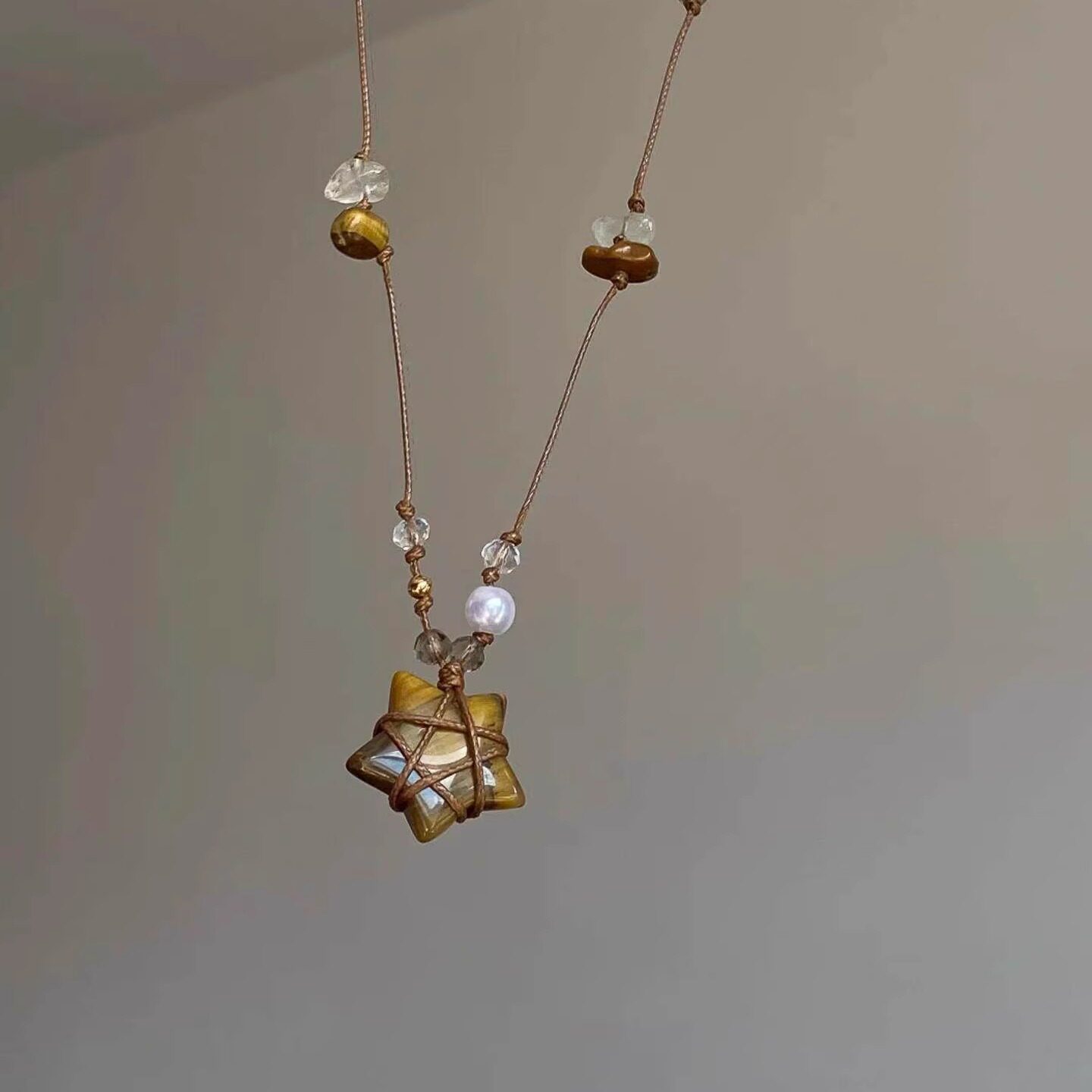 幸运星仿虎眼石星星串珠编绳项链女小众复古秋冬美拉德锁骨链配饰
