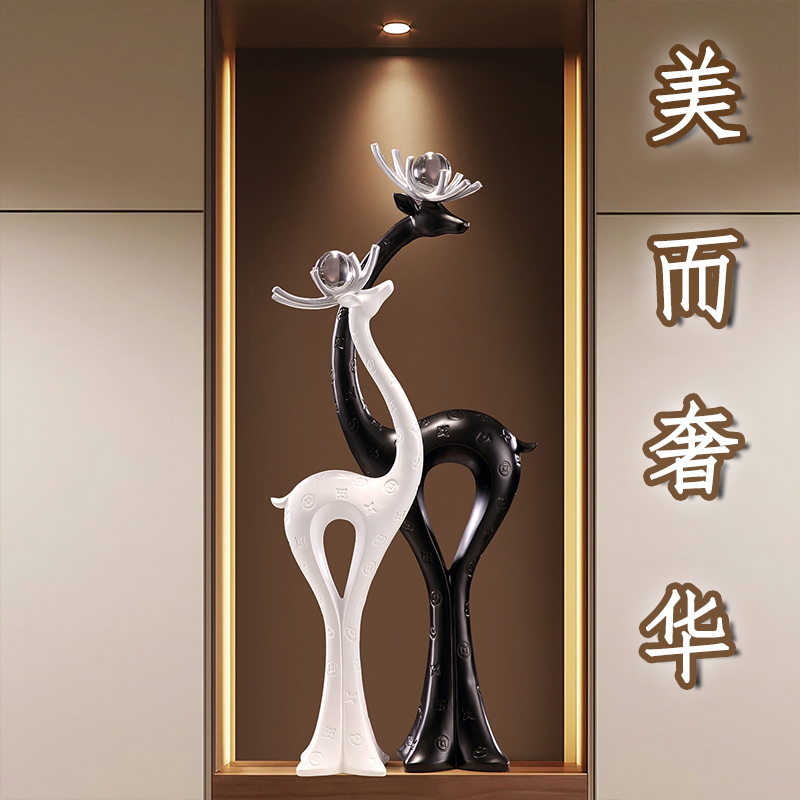 福鹿双全 轻奢高档大摆件玄关风水客厅入门入户装饰品高级感礼物