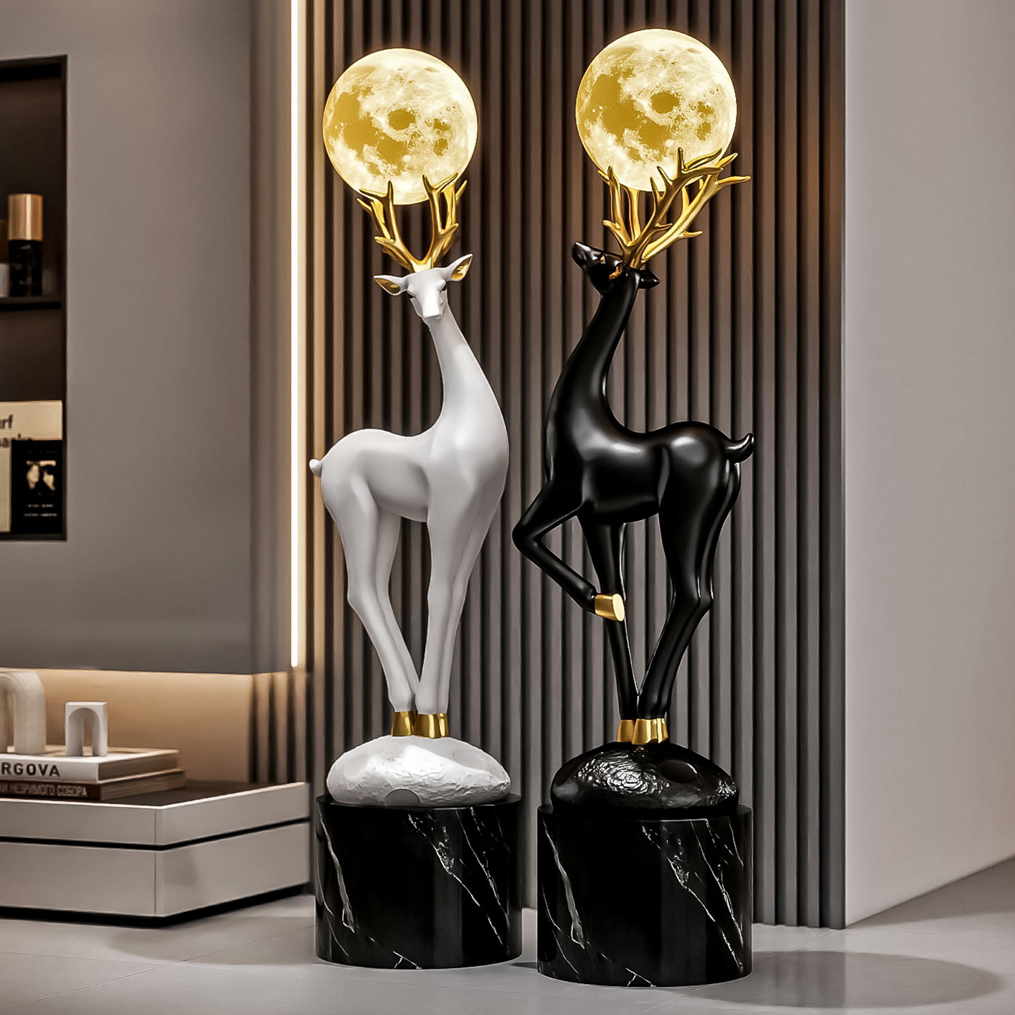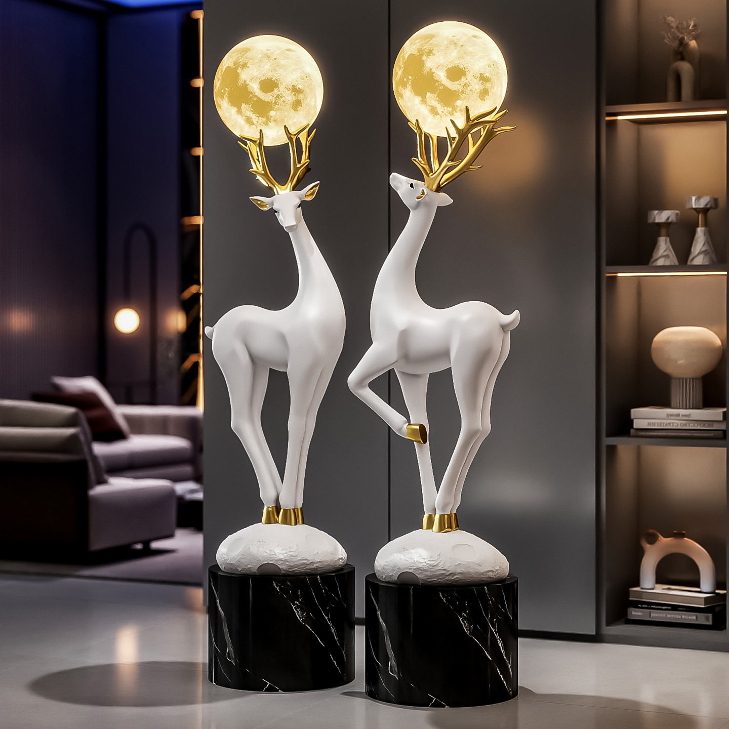 福鹿双全落地摆件现代轻奢风电视柜客厅玄关高级感装饰品乔迁礼品