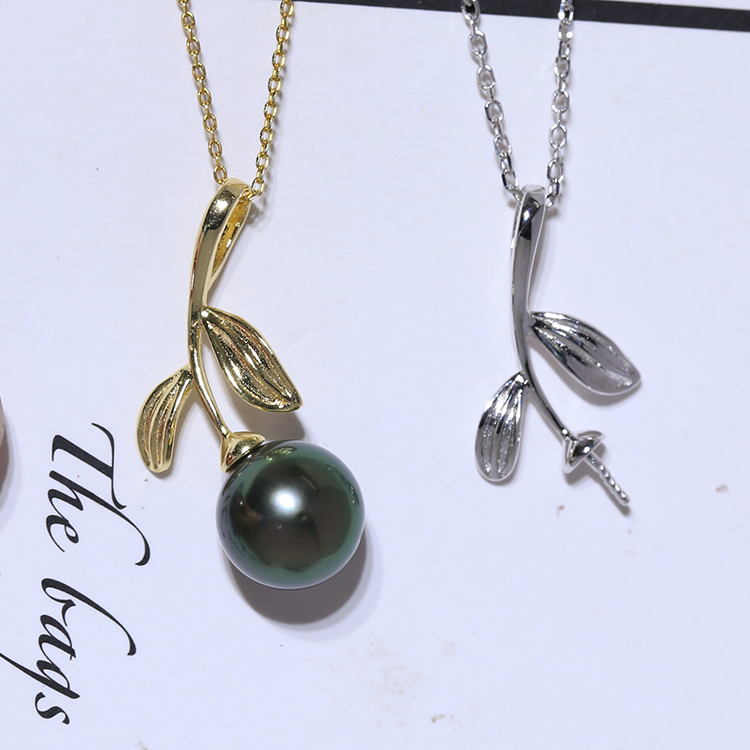 DIY配件 S925纯银珍珠吊坠空托简约树枝款项坠空托半成品适合8-12
