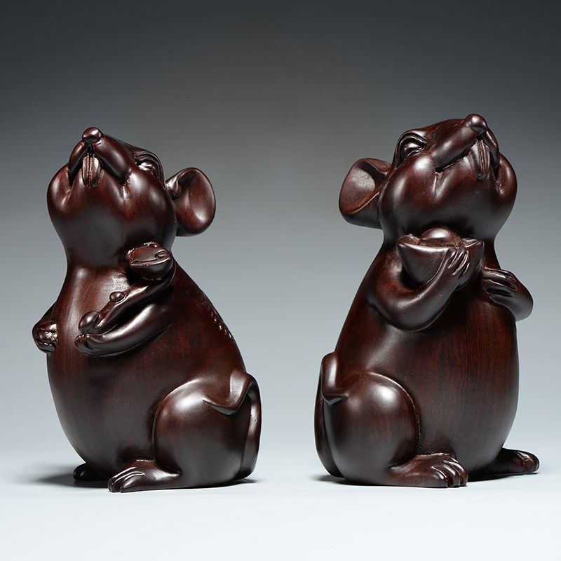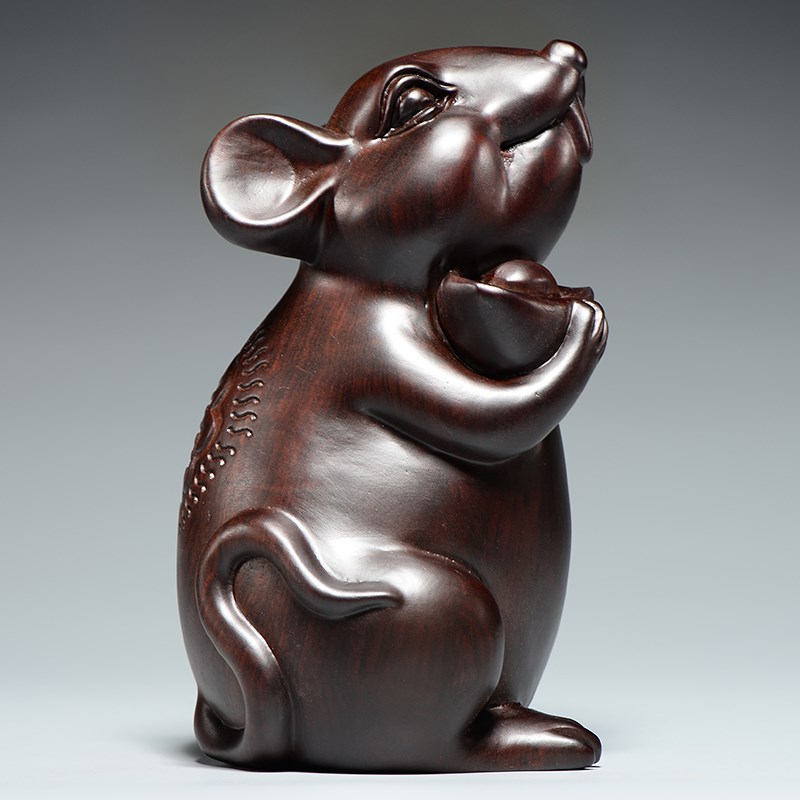黑檀木雕鼠摆件实木十二生肖木制鼠家居补角吉祥物装饰红木工艺品